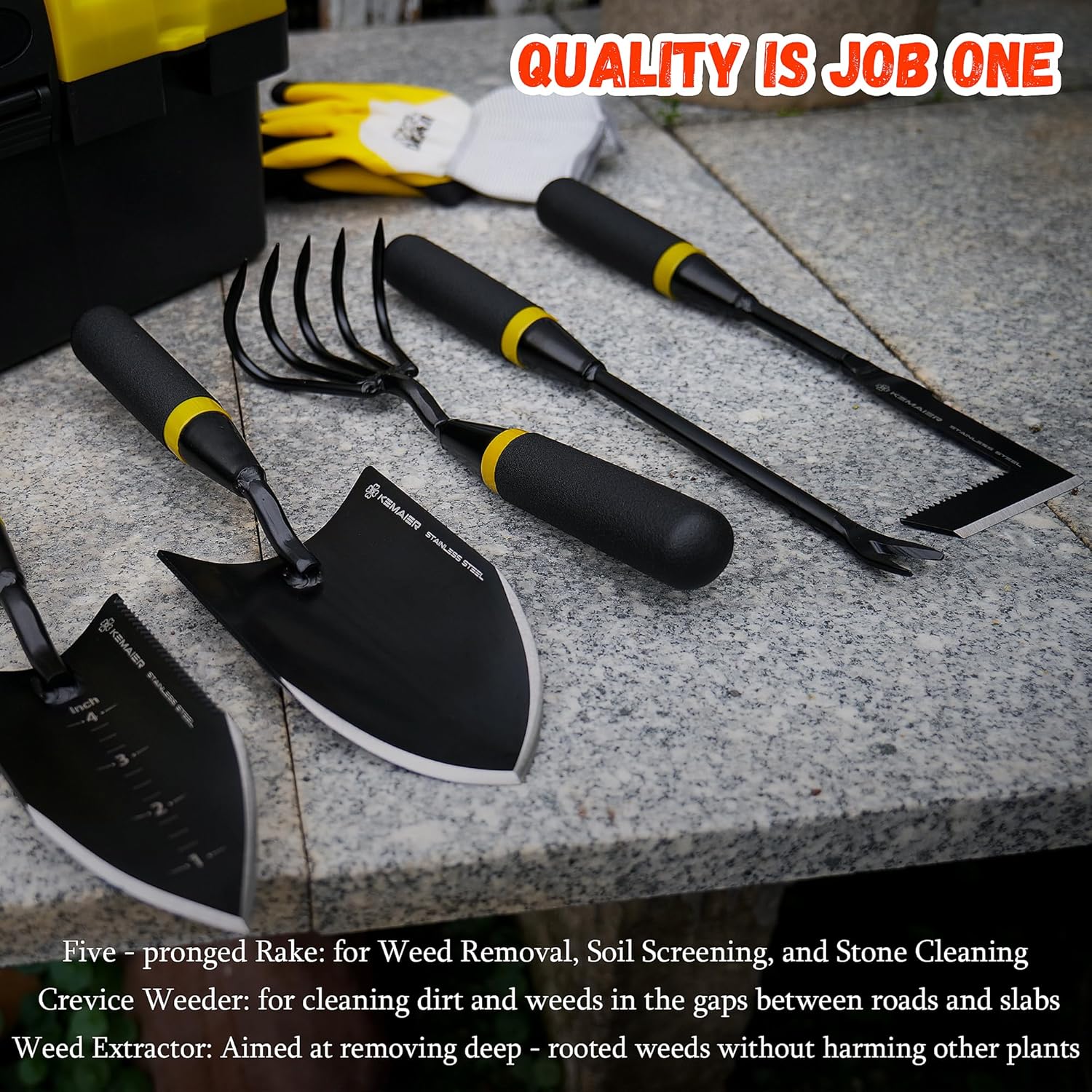 6-Piece Garden Tool Set with Storage Box, Heavy Duty Stainless Steel Gardening Hand Tools for Planting Weeding Digging, Includes Trowel, Shovel, Cultivator, Weeder, Pruner and More