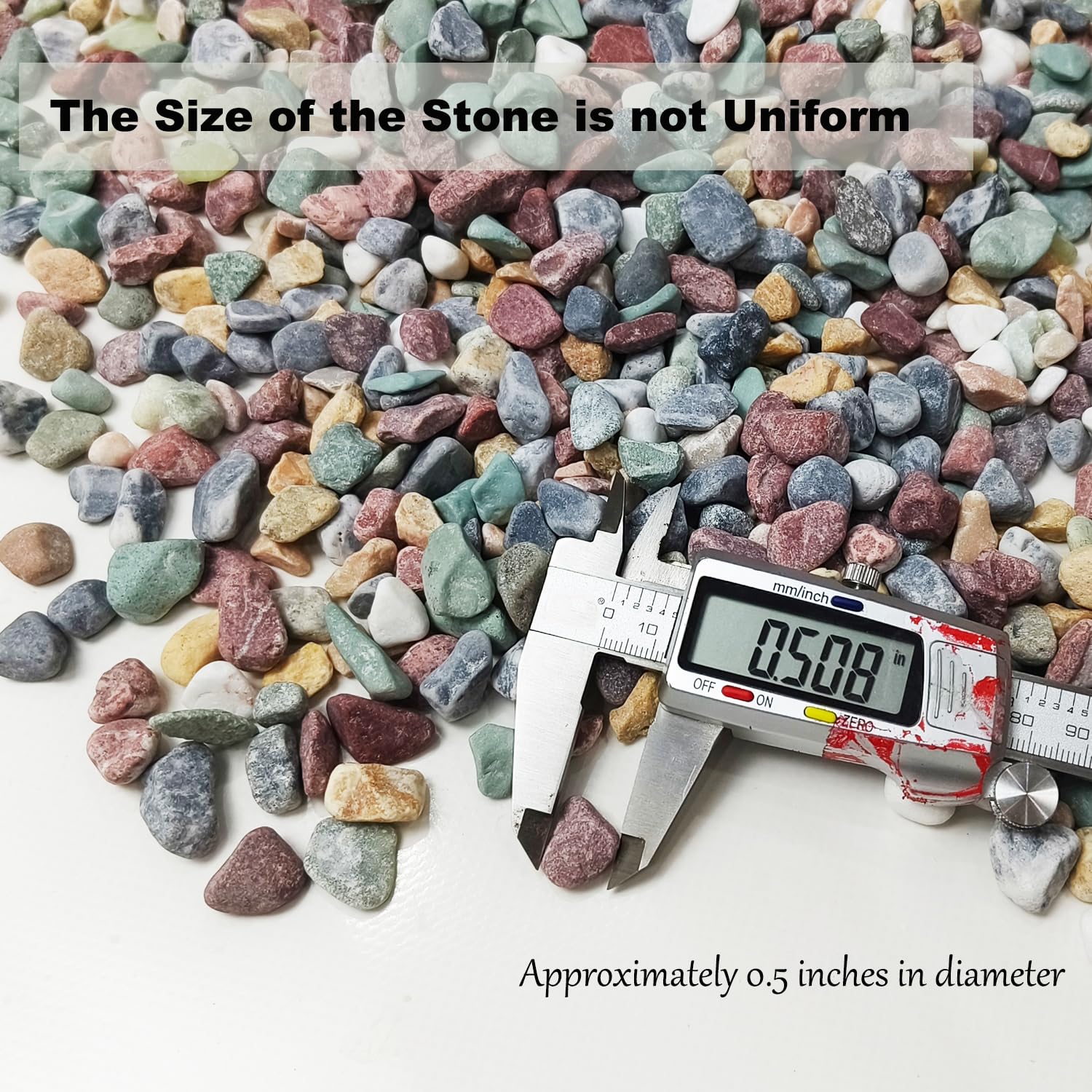 - 【Size of the Plant Pebbles】Our colorful gravel has a size of approximately 1/2 inch and varies in size, making it look more natural to use. There will be dust on the surface of the stone, Cleaning it with clean water before use can make the color of the stone brighter and more beautiful. Due to the small size of the stone, please stay away from children under 5 years old.
