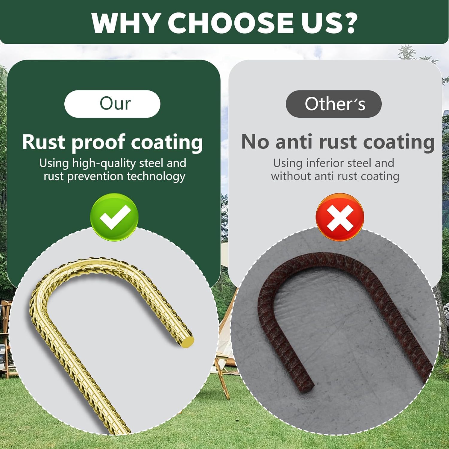 - Stability: No more struggling with flimsy stakes! Our rebar stakes 12 inch feature a unique spiral design, providing maximum grip and stability in various terrains. Whether it's sandy beaches or rocky grounds, these stakes are up for any adventure