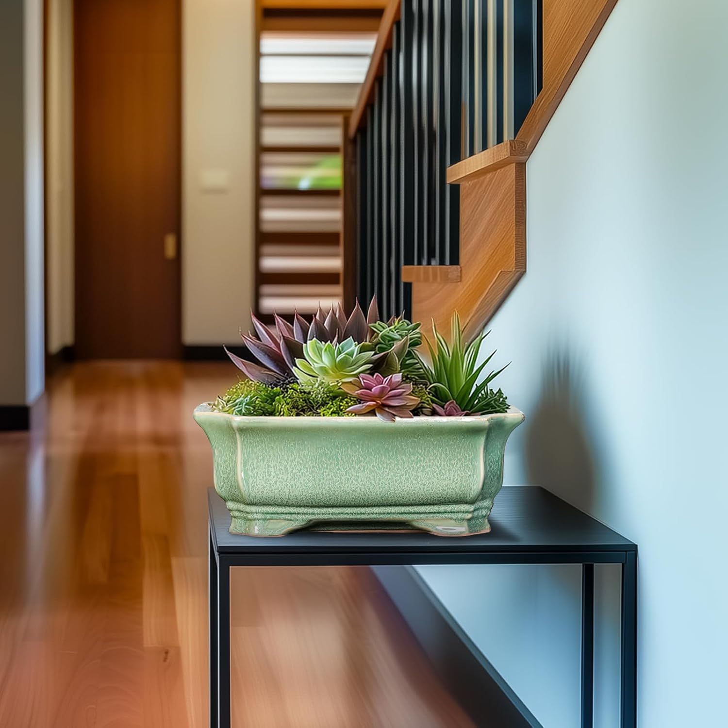 - Planter Design: Featuring a beautiful blue reactive glaze finish and elegant rectangluar appearance, this bonsai pots combines practicality with beauty, suitable for table, desk, windowsill, shelves, living room, bedroom, bathroom, porch, study, office, patio, balcony, zen garden, any indoor or outdoor space