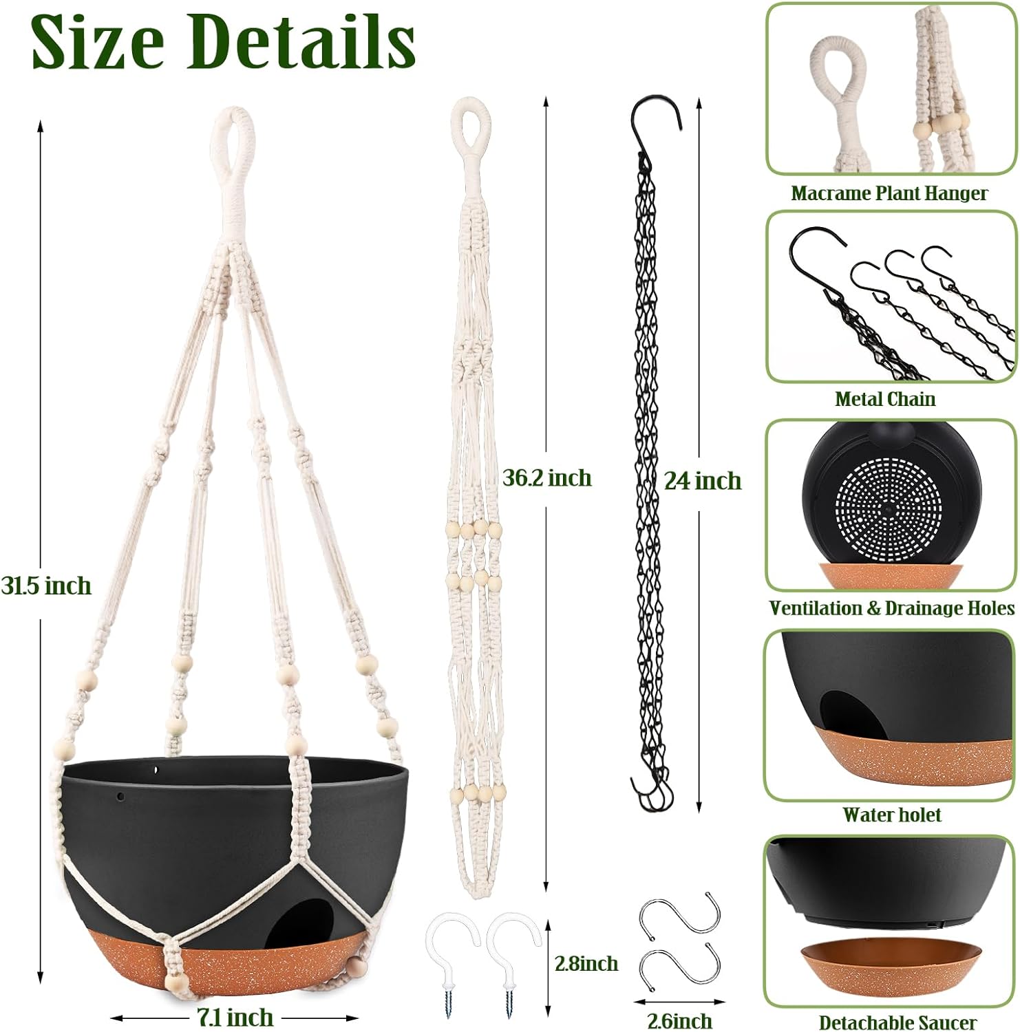 - Color : 2 Type Plant Hangers Black