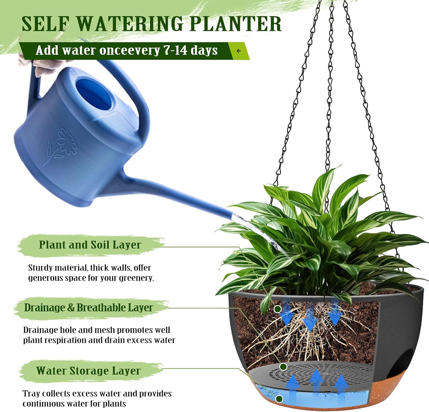 - 【Self Watering Design】The innovative recessed saucer under each hanging planter which serves as a reservoir for consistent watering ensuring consistent moisture without overwatering.