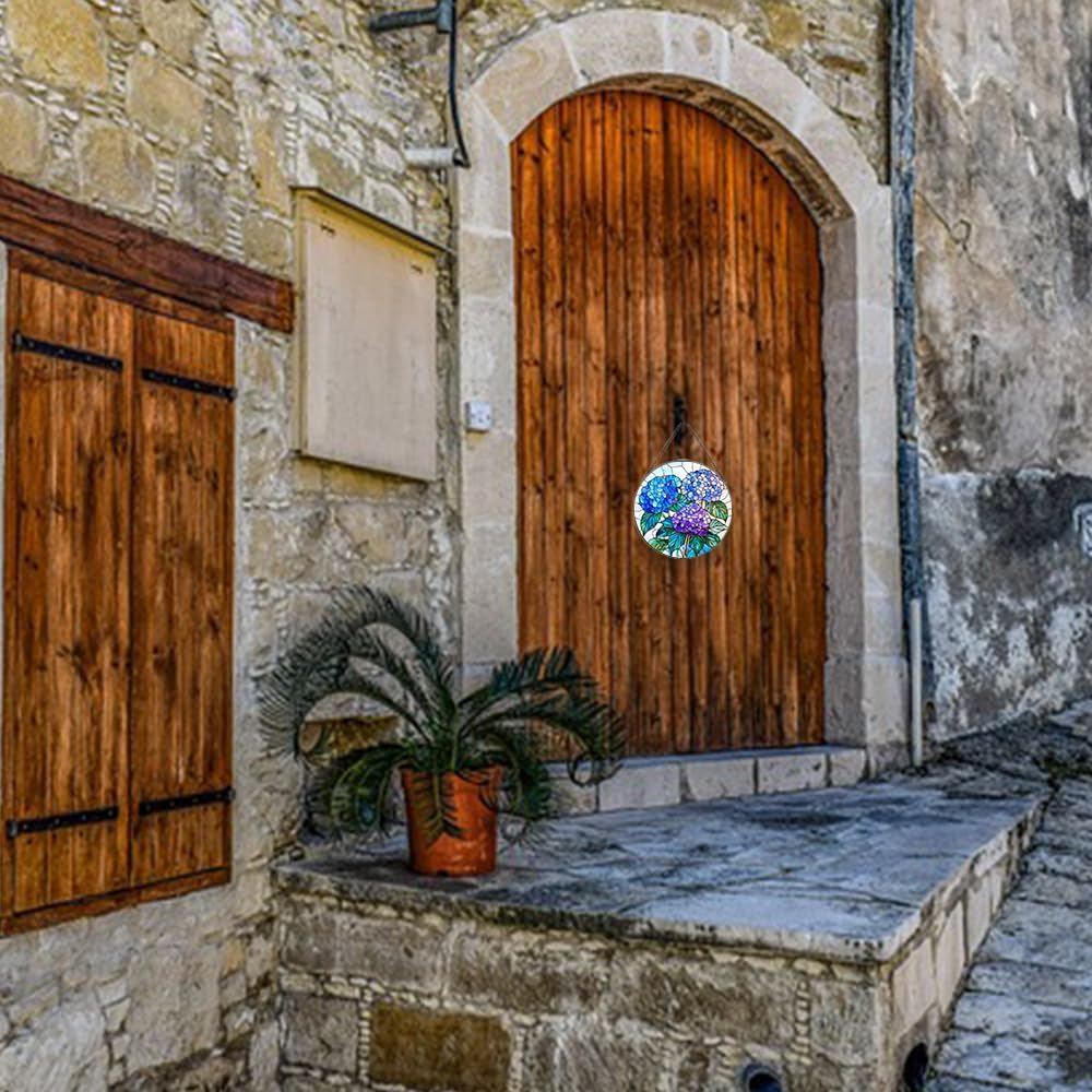 - [Stained Glass Suncatchers Gift ] – An ideal present for anniversaries, birthdays, baby showers, christmas, mother's day, father's day, valentine's day, holidays, or gardening enthusiasts, this hydrangea stained glass decor makes a memorable and stylish gift for loved ones.