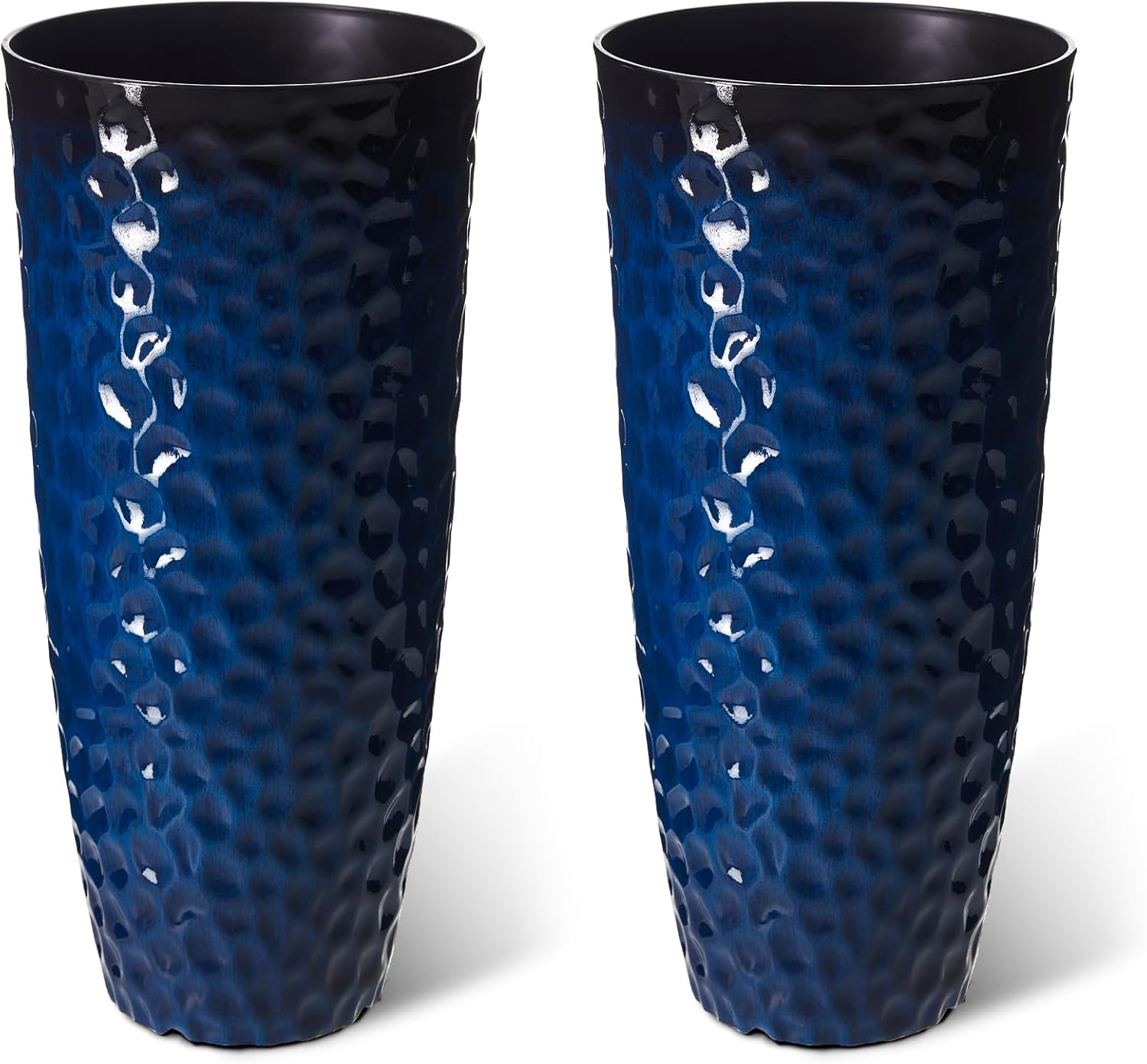 - Durable Material: Each planters for outdoor plants designed with a tall tapered shape.Glitzhome tall blue planter crafted from PP and stone mixture with honeycomb textured finish, they are weather-resistant, perfect for all seasons.Enhance your indoor or outdoor space with this stylish set of 2 tall gradient cobalt blue planters