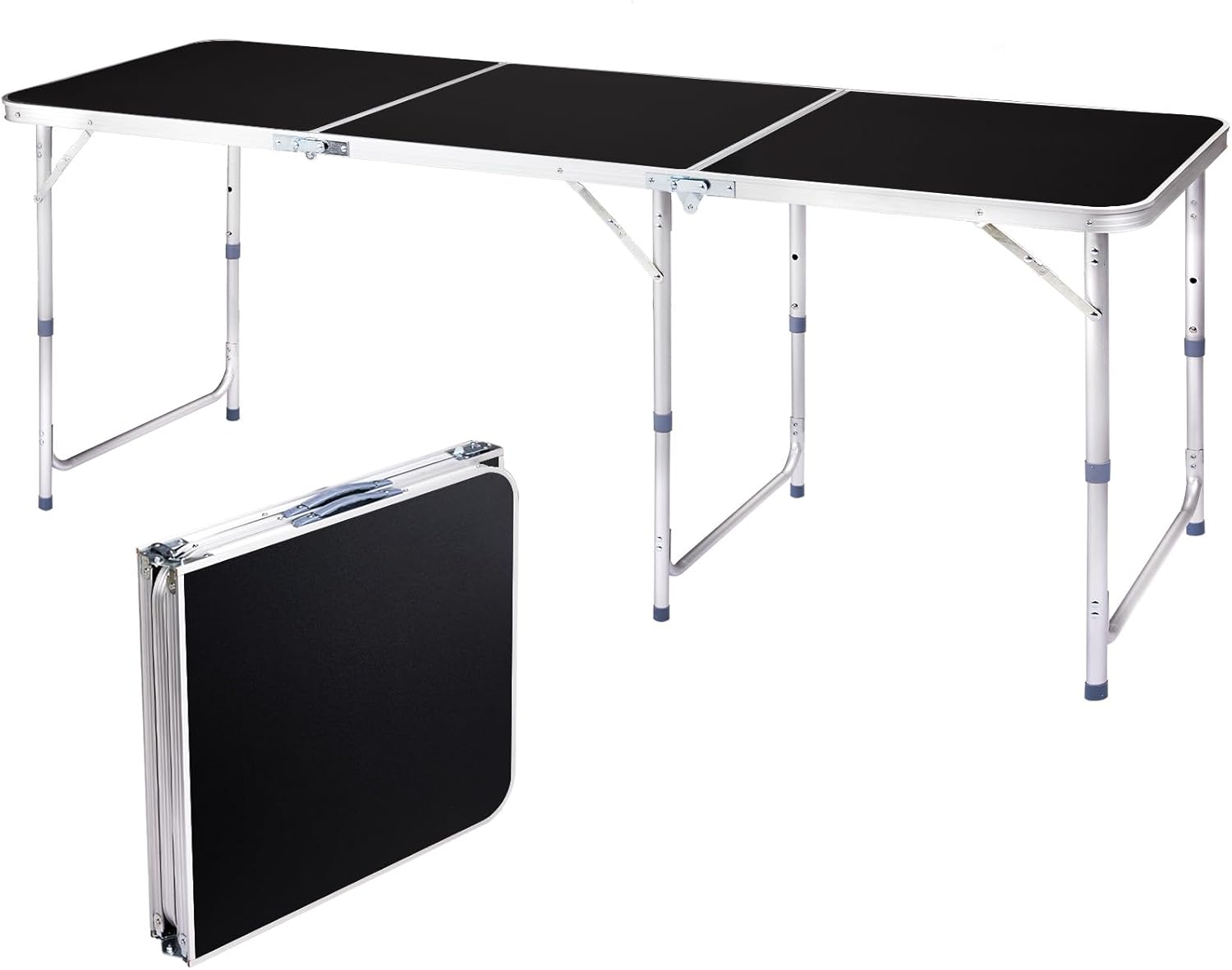 6.0 Ft Folding Portable Camping Table with Three Adjustable Heights, Tri-fold Outdoor Table, Outdoor Camping Kitchen, BBQ, Picnic, Cooking, Beach, Garden, Party, Black