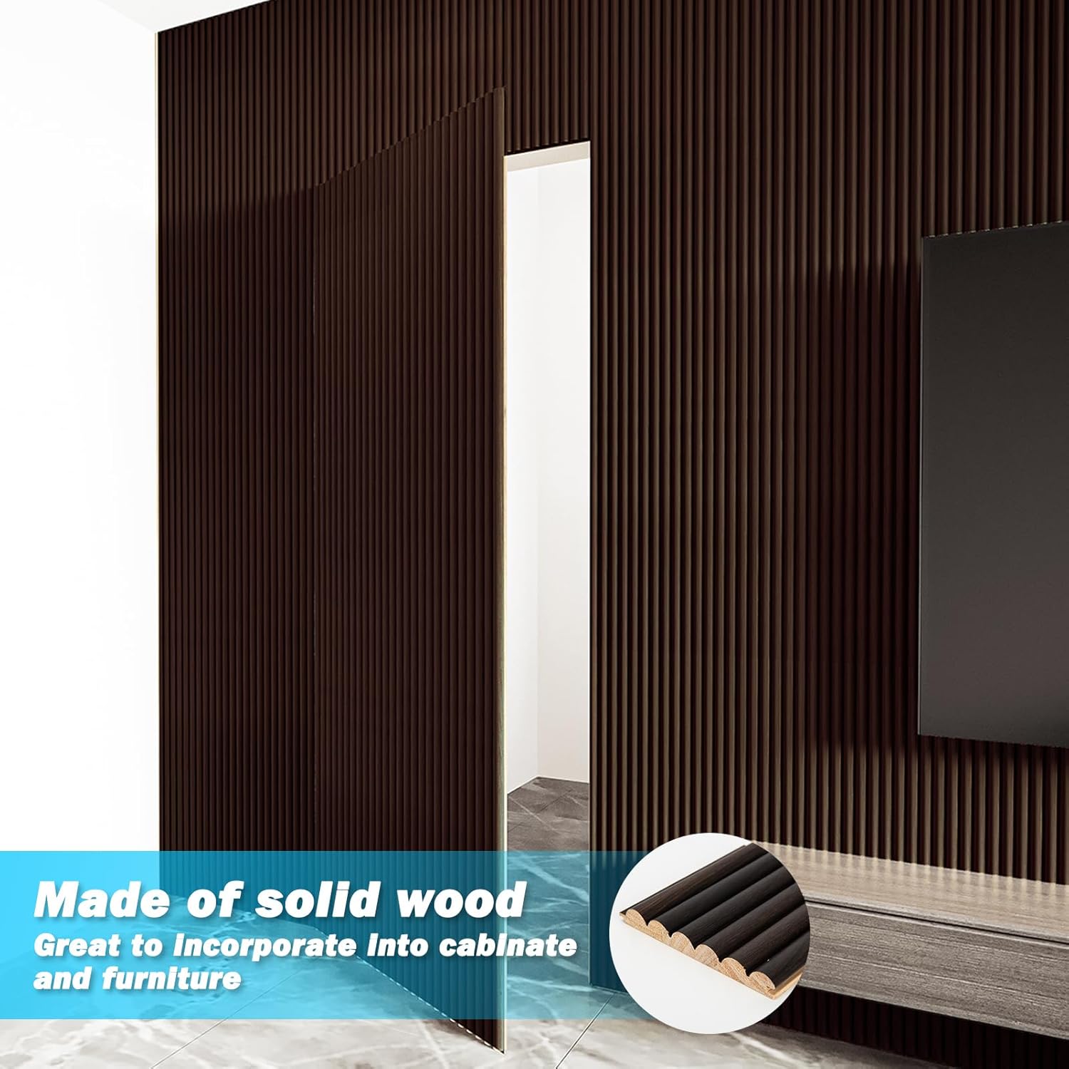 Art3d Fluted Wood Panel for Wall and Ceiling, Beaded Accent molding for Home Decoration, Pack of 4pcs + 1pc End-Trim, Size 108 x 5.7in.- Beaded Smoked Oak