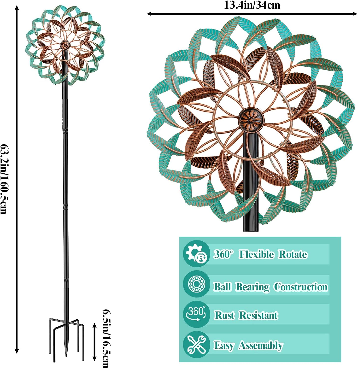 360° Wind Spinners Outdoor, Wind Sculptures Windmill with Metal Stake, Kinetic Large Metal Yard Art Decor Spinners Pinwheels for Garden Outside Patio Lawn, 63.2 * 13.2"