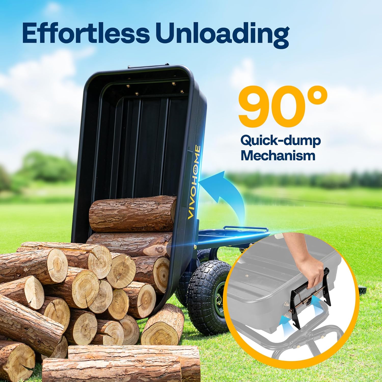 VIVOHOME 4 Cu.Ft 660lbs Wheelbarrow Garden Cart Dump Wagon with 2-in-1 Convertible Handle Attach to ATV or Tractor, 10" All Terrain Wheels, Quick Release System, Heavy Duty Utility Trailer for Yard