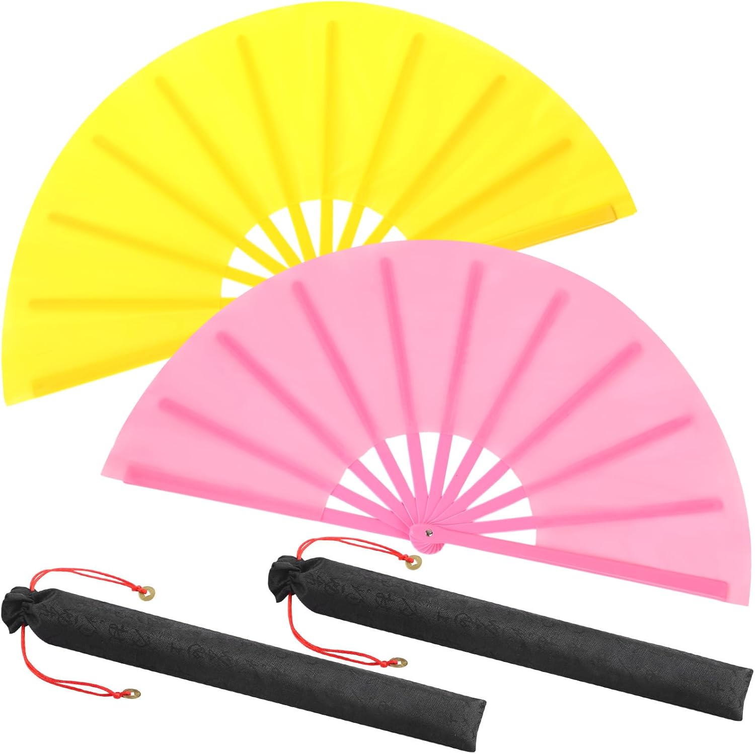 Maitys 2 Packs Large Clap Fans for Line Dancing Large Chinese Folding Hand Fans for Men and Women, Festival, Tai Ji, Kungfu, Martial Art, Gifts (Pink and Yellow)
