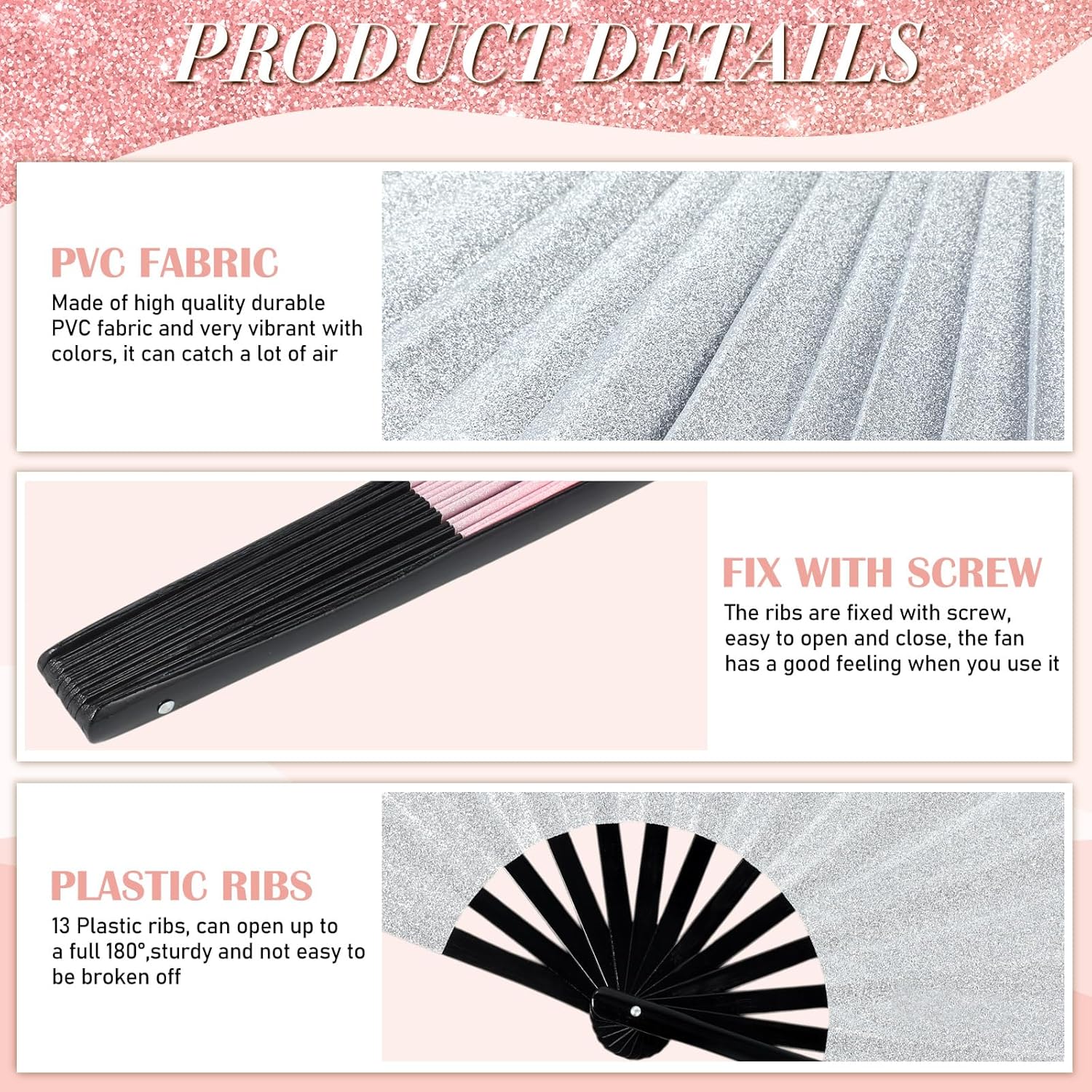 Maitys 2 Packs Large Clap Fans for Line Dancing Large Chinese Folding Hand Fans for Men and Women, Festival, Tai Ji, Kungfu, Martial Art, Gifts (Glitter Silver and Pink)