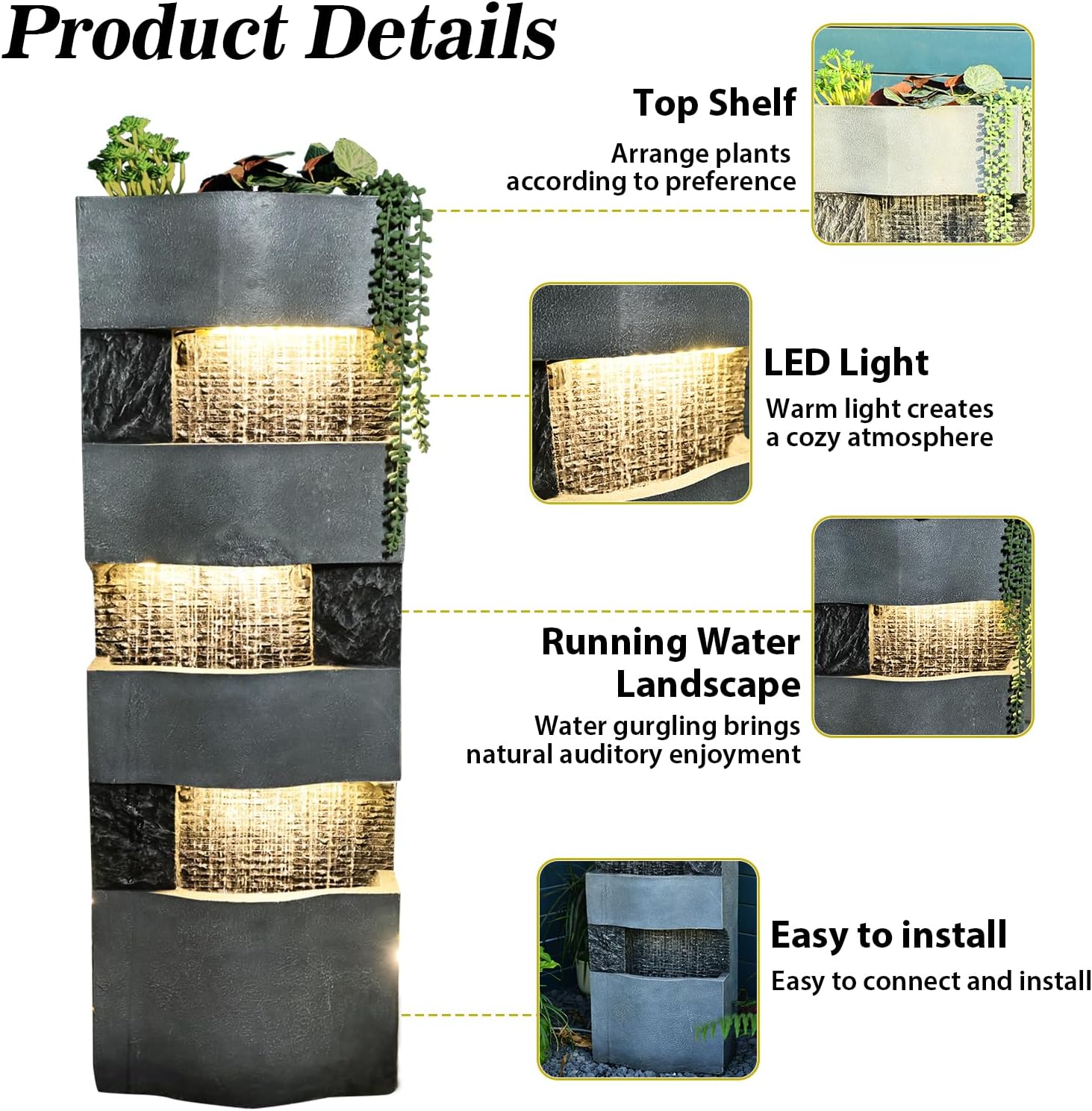 - Multi-scene Application: The outdoor fountains and waterfalls is easily integrated into all kinds of indoor and outdoor space, adding a touch of fashion style for the courtyard, terrace. The gentle, soothing sound of flowing water creates a quiet, relaxing space to unwind and unwind.