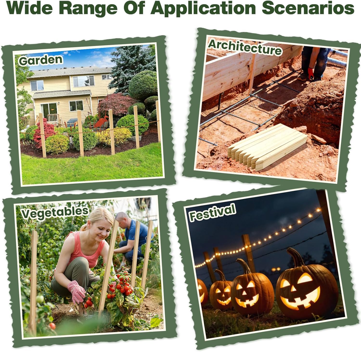 - Hassle-free Installation: These wooden stakes have been professionally processed to form smooth tips, which can effortlessly slide into thick soil, simplifying the installation process. Our goal is to make the most of them. Note: Wood has different grain patterns and nodules during its growth process. We cannot completely avoid them during processing, so there are a few small nodules on the surface of our products when they are delivered. But this does not affect the overall functionality