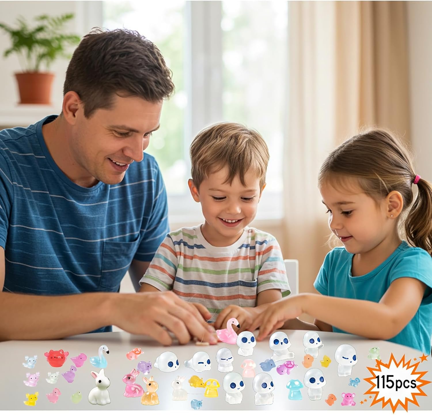 - Packaging: You will receive 115 Pcs mini animals, including turtles, tiny ducks, puppies, kittens, bunnies, flamingos, mushrooms, ET(aliens),Fantasy creatures, Mysterious little animal, and various other Fairy Garden Figurines
