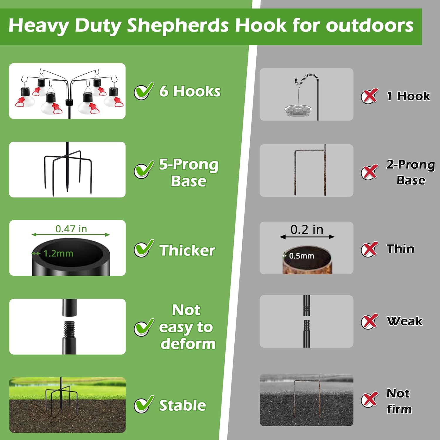- Easy to Install and Refill:Installation is so easy;The wide-mouth glass globe makes filling and cleaning effortless.Pair it with our 47-inch Shepherd's Hook and 5-claw ground grip for a sturdy and practical setup;No wires needed;Just turn on the switch during the day for automatic charging,and it will light up automatically for 6-8 hours at night