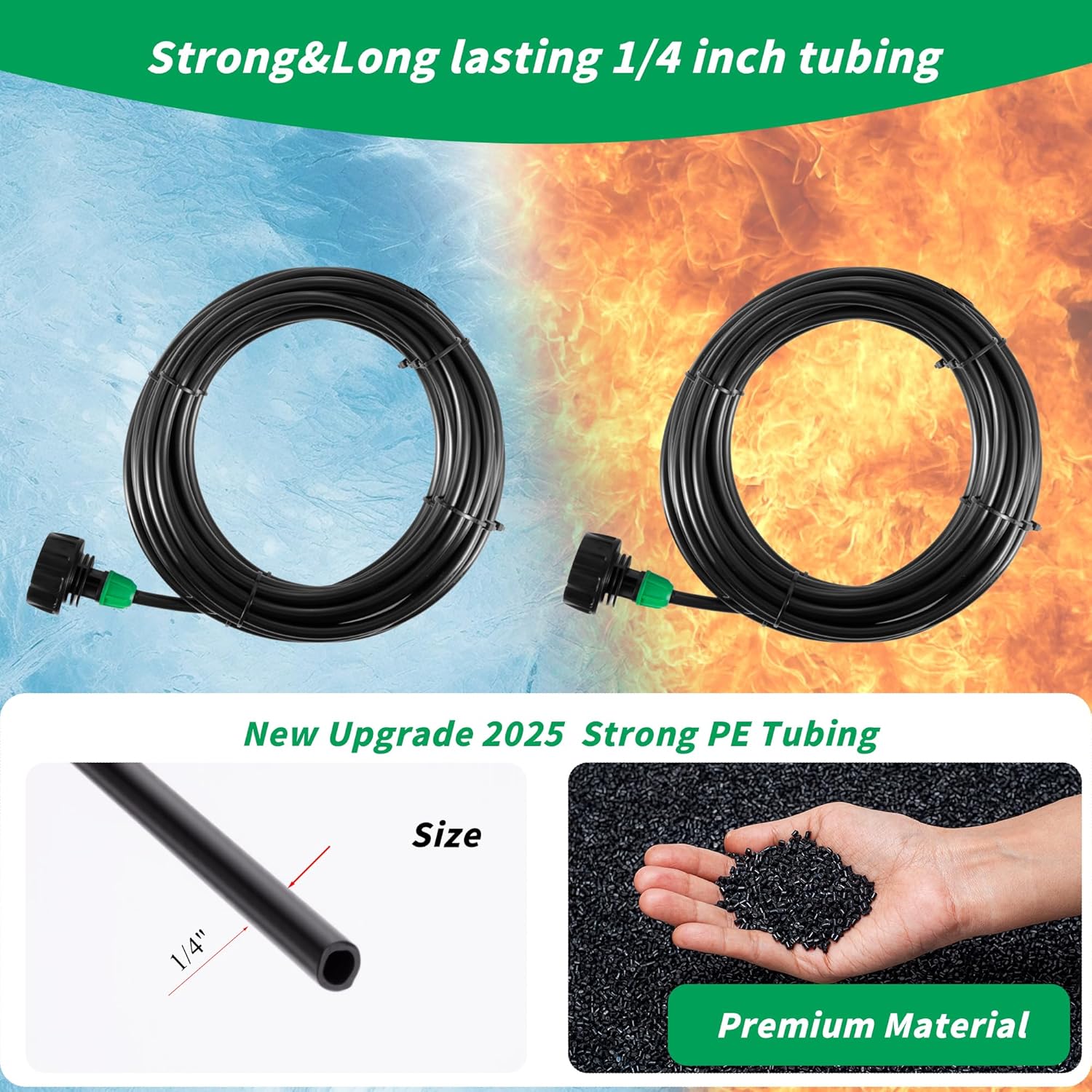 - AFTER SALE SERVICE: If you encounter any issues, please don't hesitate to contact us. Try this misting system now and stay cool on even the hottest days! Enjoy your outdoor activities with confidence and ease. (Warm Tip: IF THE GARDEN HOSE ADAPTER AND PE PIPE BECOME LOOSE, SOFTEN THE PE PIPE WITH HOT WATER BEFORE RECONNECTING IT TO THE ADAPTER.)