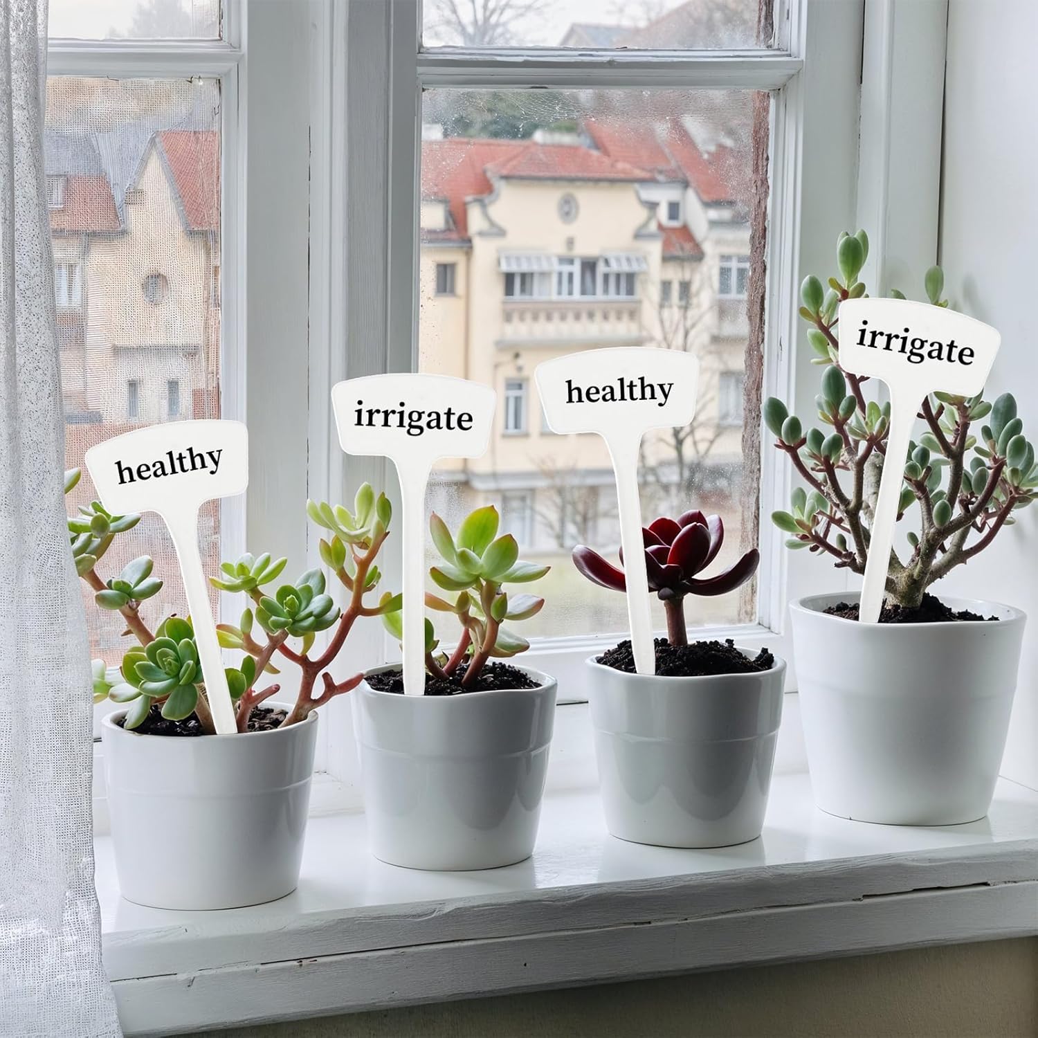 - T-type Design: The plastic plant labels have a pointed end, making it simple to insert them into the soil or potting mix. They securely stand upright, providing a clear display of plant information. When it's time to update or change your labels, simply wipe off the previous writing with a damp cloth and rewrite as needed.