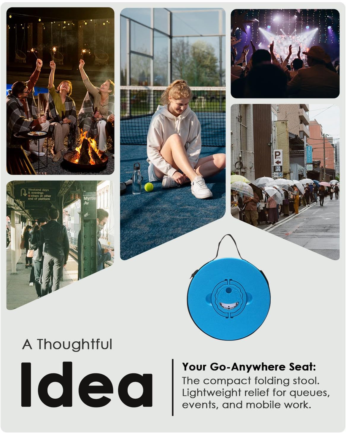 - MULTI-SCENARIO PORTABLE STOOL FOR ADULTS – Ideal collapsible stools for adults at camping trips, sports events, concerts, long queues, garden parties, RV travels, and as an temporary seat.