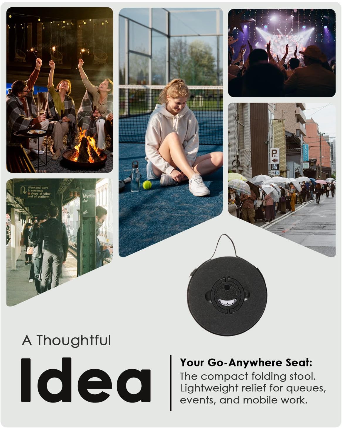 - MULTI-SCENARIO PORTABLE STOOL FOR ADULTS – Ideal collapsible stools for adults at camping trips, sports events, concerts, long queues, garden parties, RV travels, and as an temporary seat.