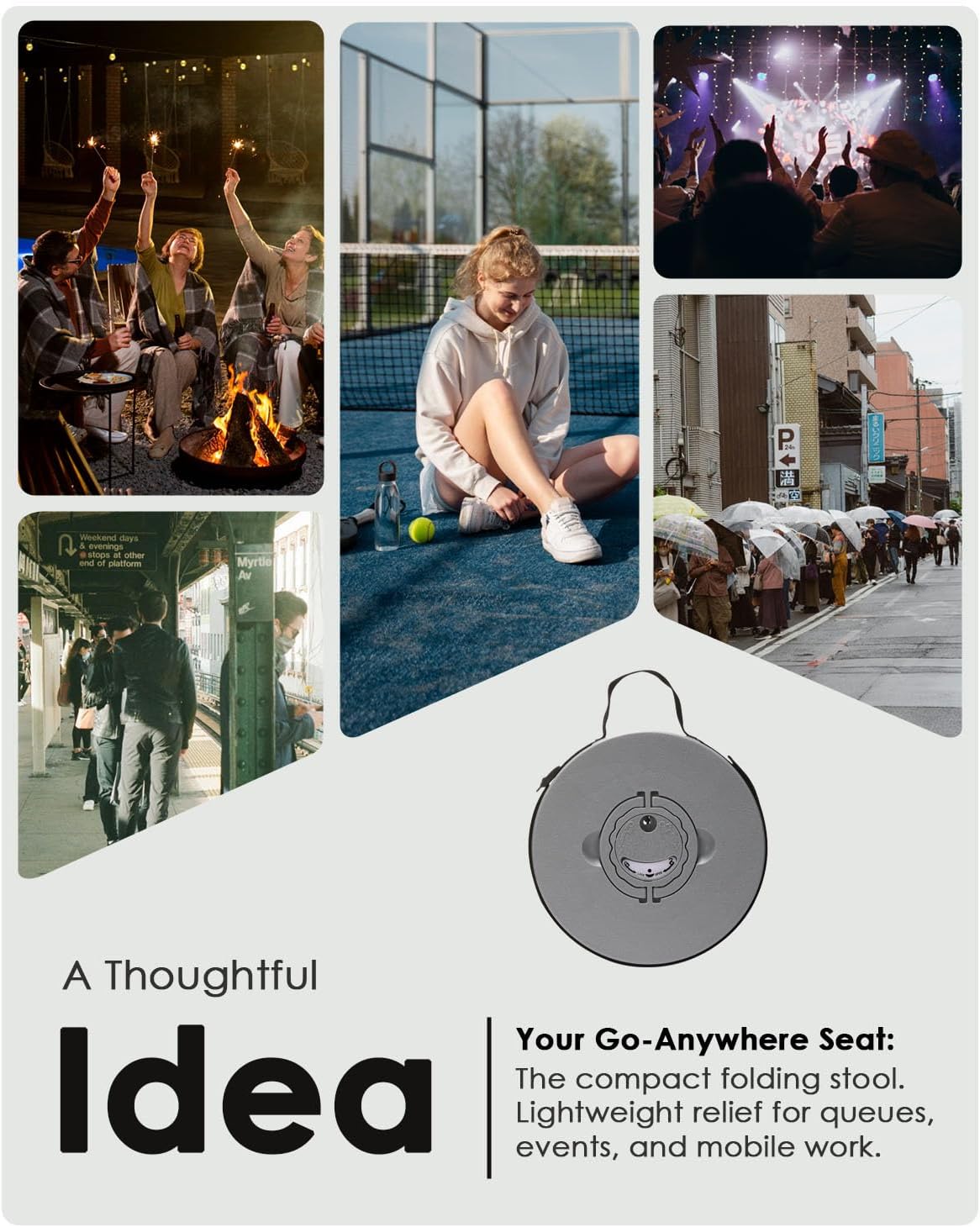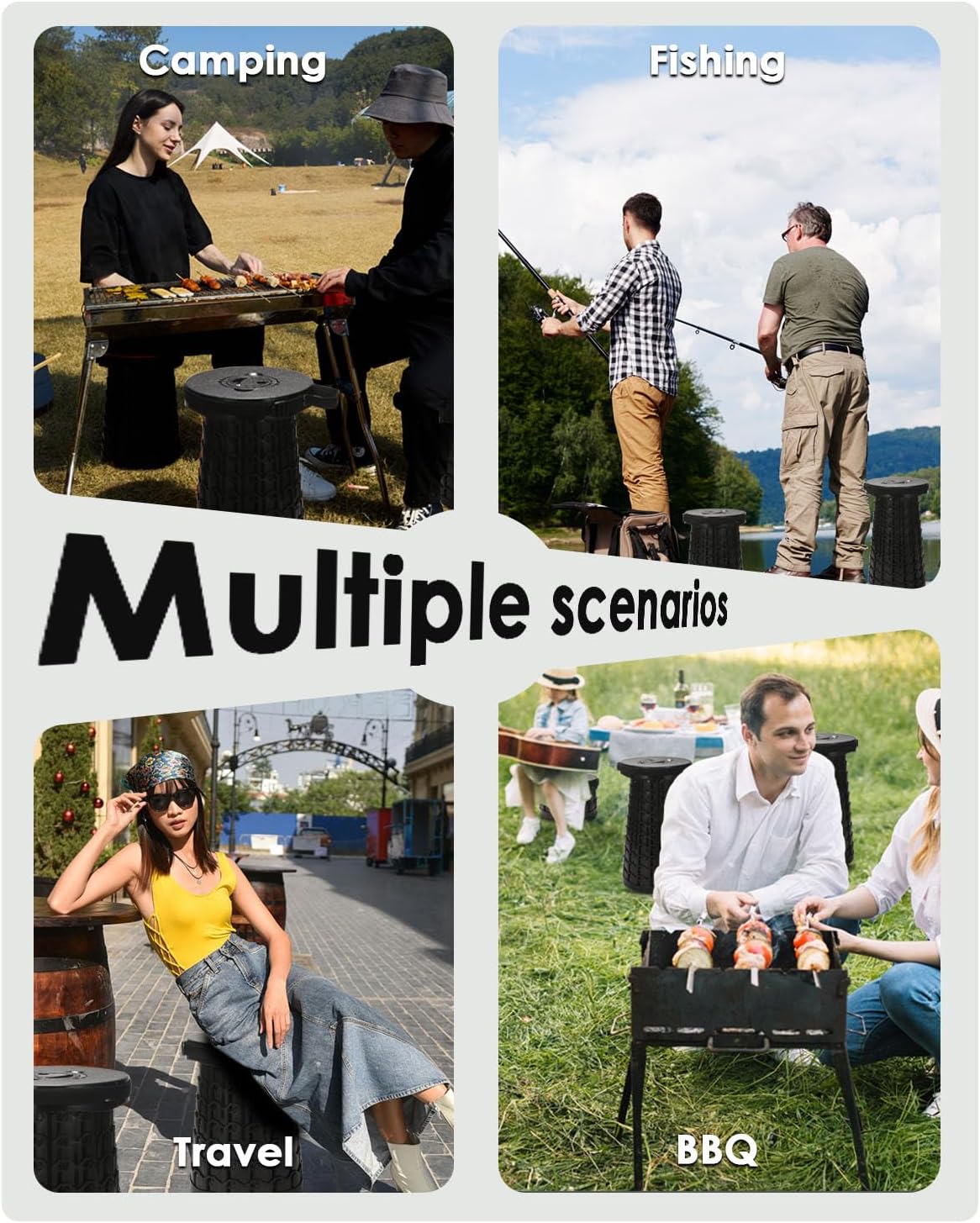 - MULTI-SCENARIO PORTABLE STOOL FOR ADULTS – Ideal collapsible stools for adults at camping trips, sports events, concerts, long queues, garden parties, RV travels, and as an temporary seat.