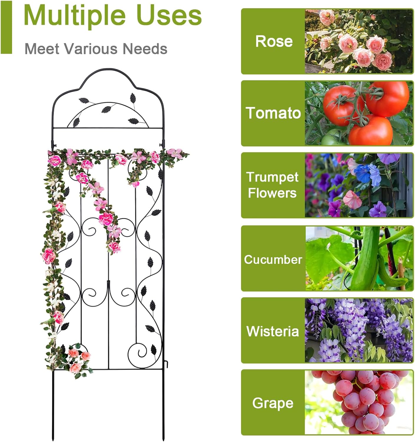 - 3. Versatile Use: Maximize functionality with 2 interlocking trellis (60"H each) – use as a vertical plant support for tomatoes and cucumbers, a decorative garden screen, or a sturdy fence border. The extended 10" ground stakes enhance stability, securing the trellis firmly in soil, planters, or raised beds.