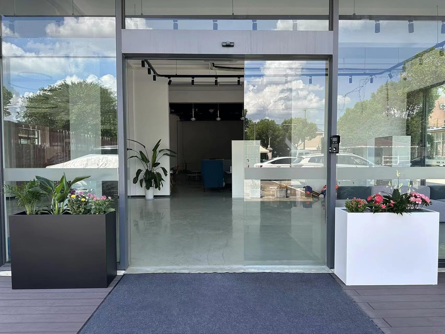 38" L x 13" W x 30" H Metal Tall Rectangular Planter - Large Planter Box for Outdoor Patio/Porch Modern Design for Plants, Flowers, Garden,Spliced Flower Pot (White)