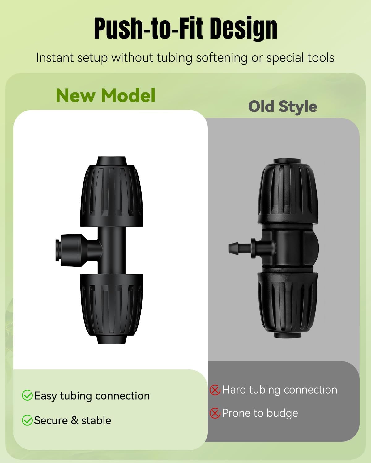 - Optimized Water Distribution: Enjoy balanced pressure throughout your irrigation system! Secure locking mechanism in the 1/2'' to 1/4'' drip irrigation tee connector effectively prevents leaks or budging. Always ensure a consistent flow to every emitter
