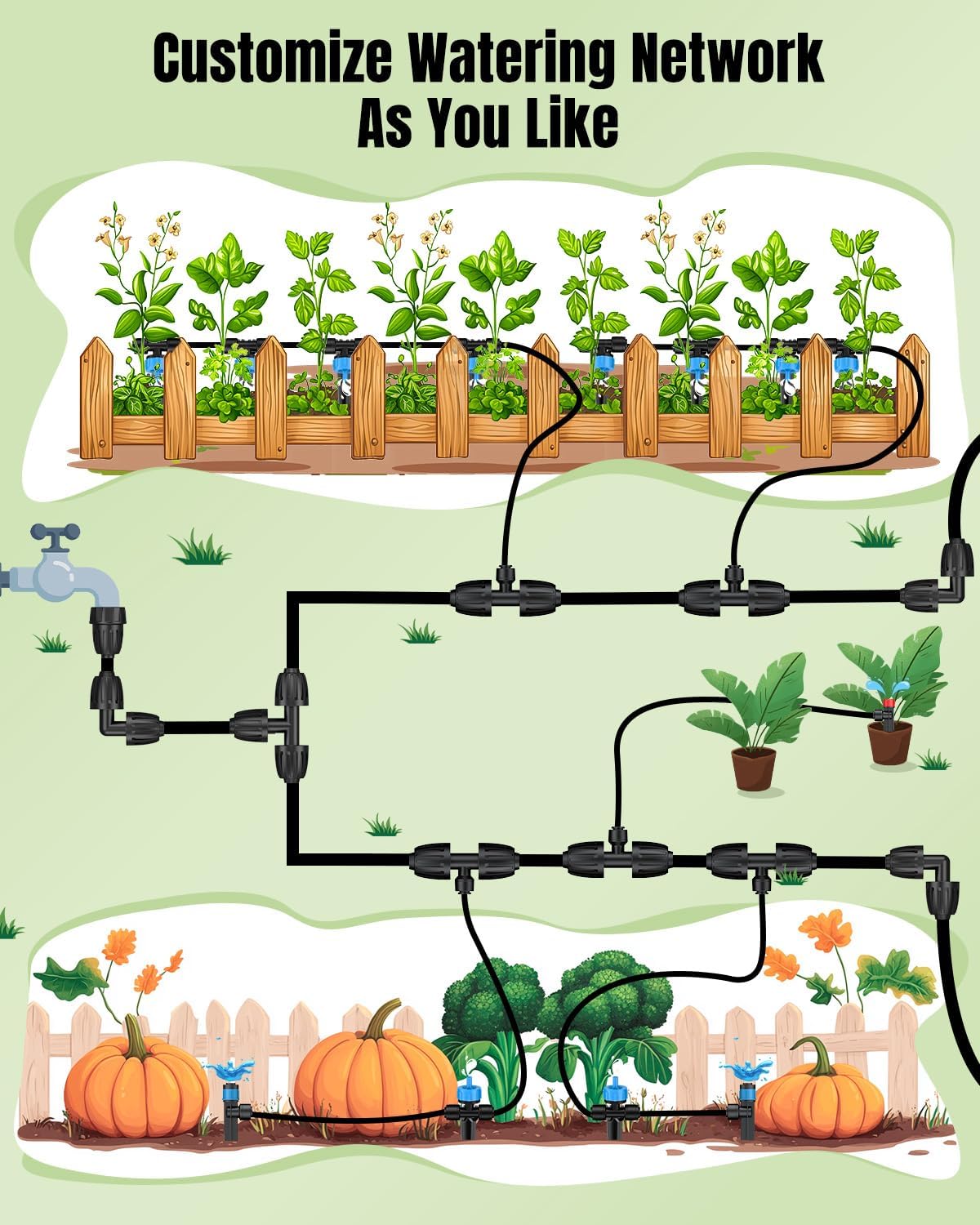 - Wide Application: Ideal drip irrigation parts for creating branch lines in any planting zone, including raised beds, vegetable gardens, greenhouses, patios, lawns, and more. Effortlessly bring life to every corner of your space