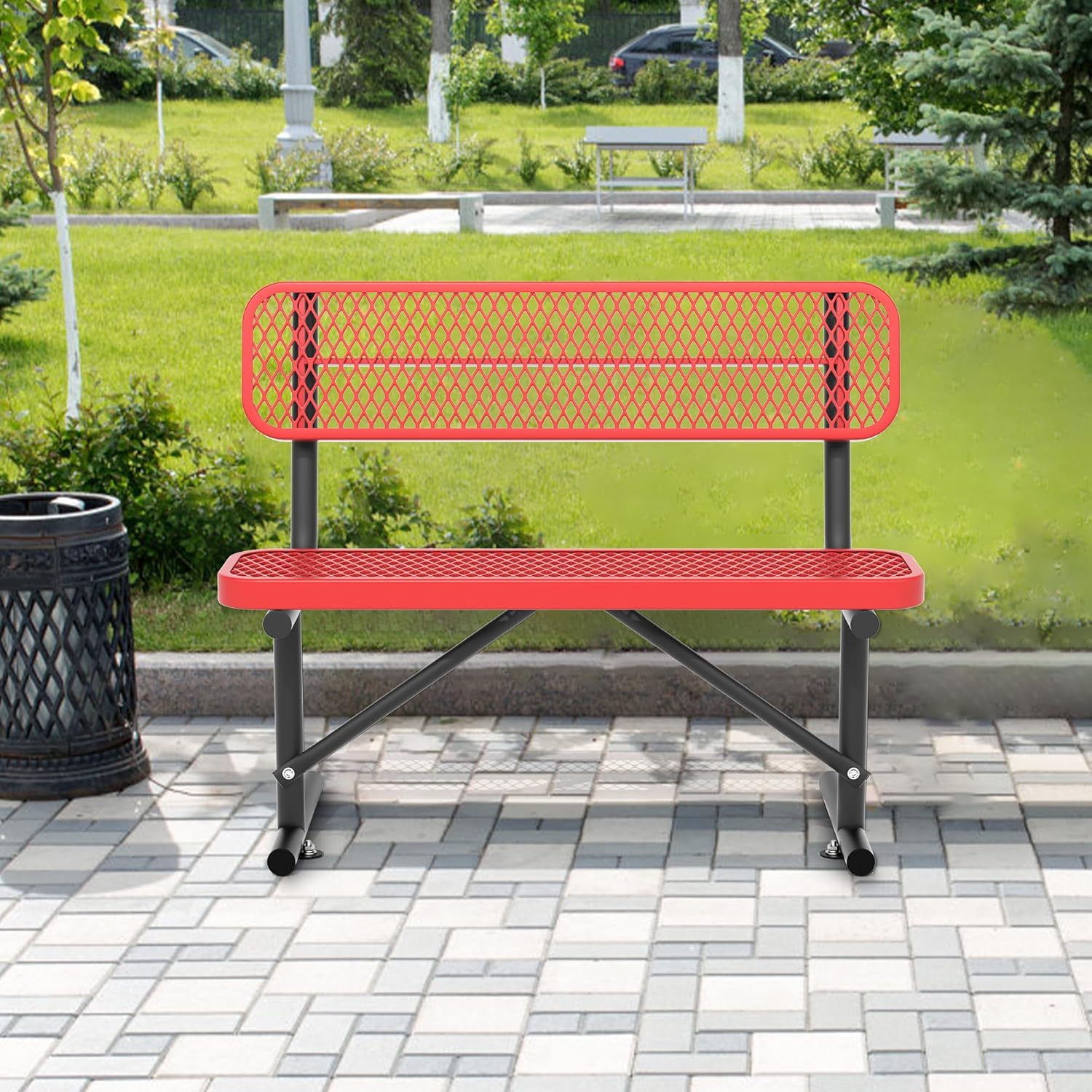 4/6/8 Feet Park Bench for Outside Heavy Duty Metal, Garden Benches Outdoor Bench with Backrest & Portable Frame, for Shopping Malls Stores Parks Patios Decks, Red