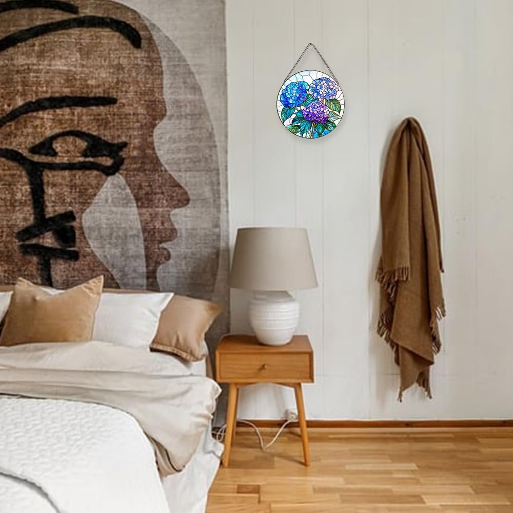 - [Hydrangea Stained Glass] – This beautiful hydrangea stained glass suncatcher features an exquisite oil-painting-style artwork, with vibrant colors and intricate details that add a touch of artistic charm to your home or garden.