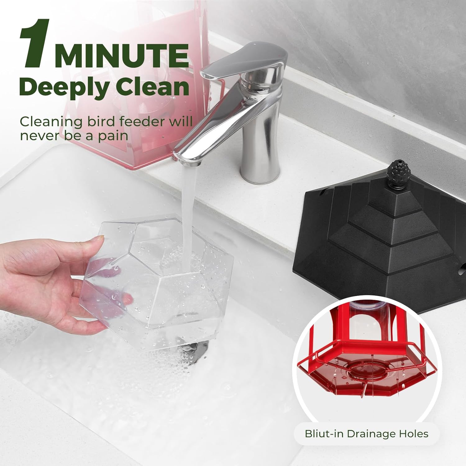 - 【Easy to Refill & Clean】 Easily remove the rainproof roof and wide mouth for quick refilling and cleaning.Transparent seed compartment, easily to see when seeds runs out and replenish in time.