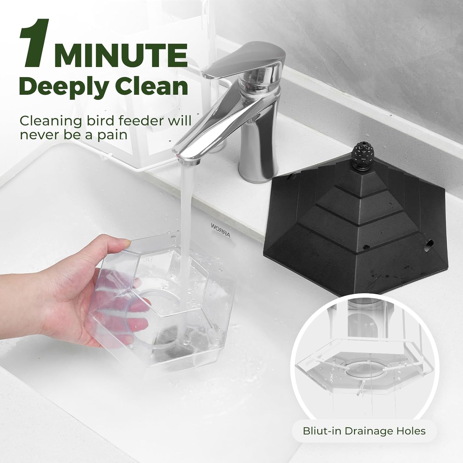 - 【Easy to Refill & Clean】 Easily remove the rainproof roof and wide mouth for quick refilling and cleaning.Transparent seed compartment, easily to see when seeds runs out and replenish in time.