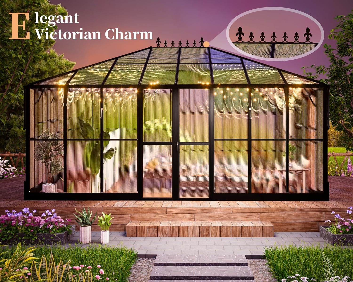 - Stylish Pavilion Design: Our outdoor greenhouse feature a unique pavilion design that adds a touch of sophistication to your garden while providing the perfect growing environment for your plants