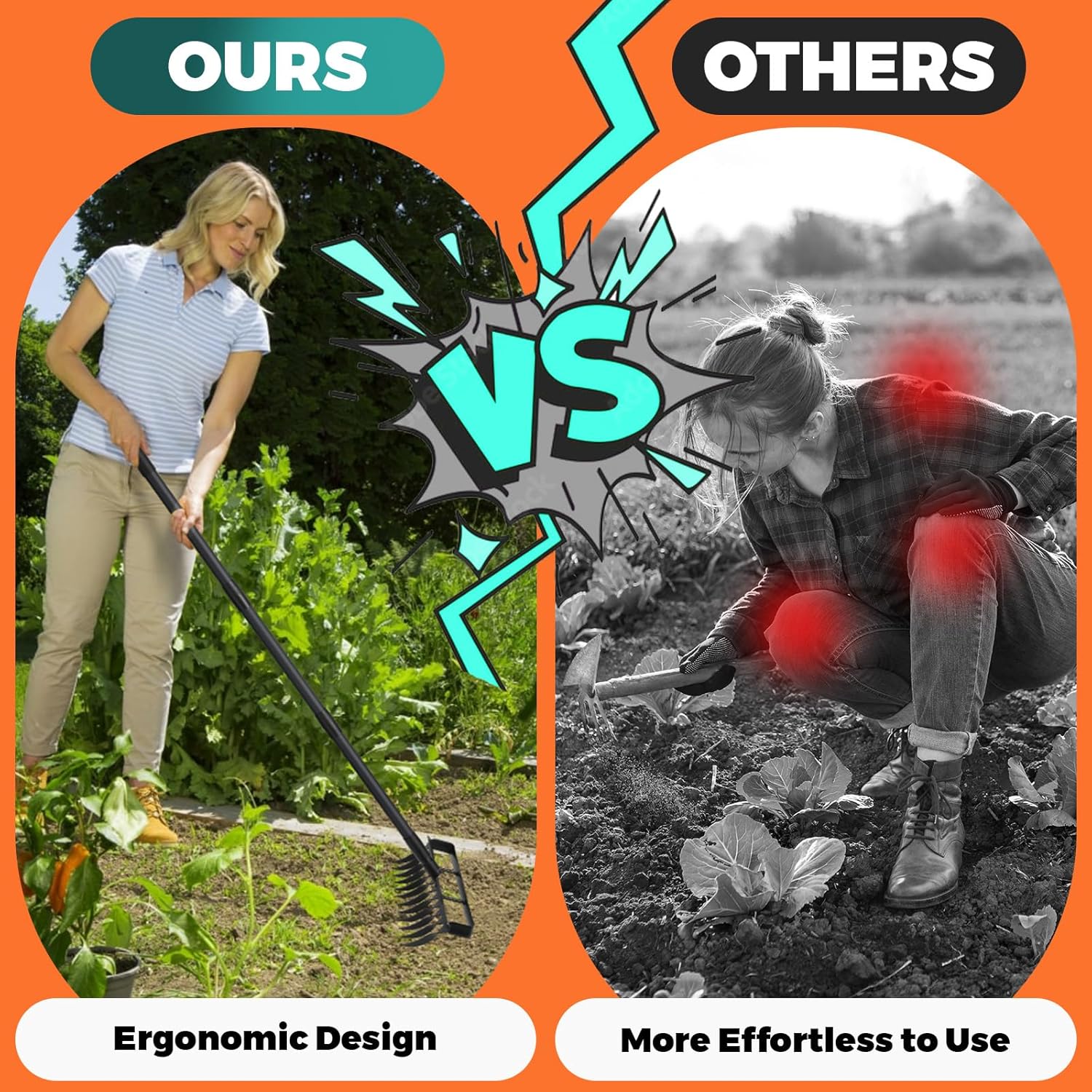 - Efficient Hoe Tool: Equipped with 12 sharp tines, this stirrup hoe easily penetrates soil to remove weeds at the root, simplifying weed removal. As a top-tier weed puller and garden cultivator, it keeps your garden beds healthy and weed-free with minimal effort.