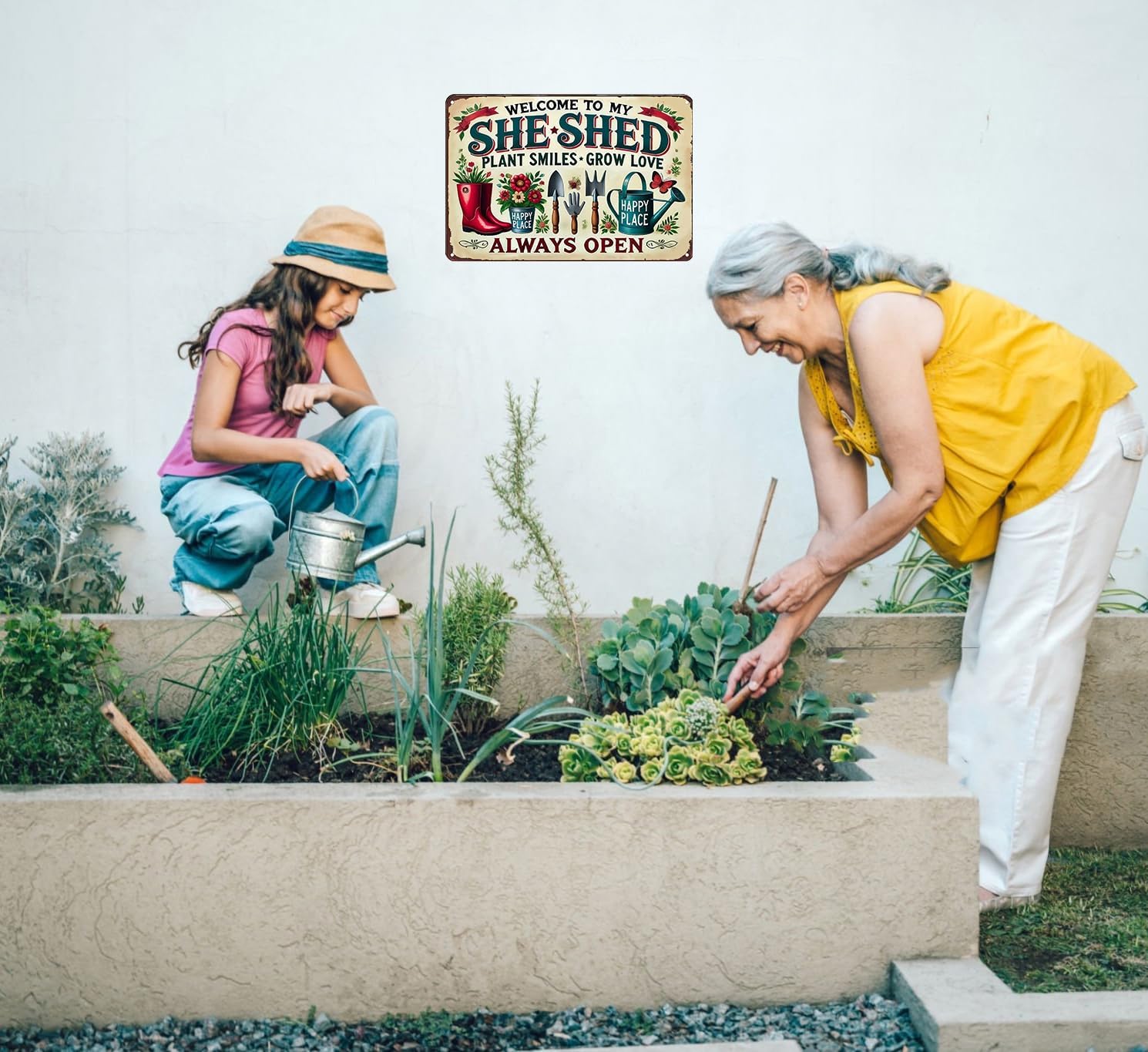 Bestylez Garden Gifts Welcome to My She ShedVintage Gardening Signs for Home Garden Greenhouse Living Room Bedroom Yard Outdoor Decor 8X12 Inch (3372)
