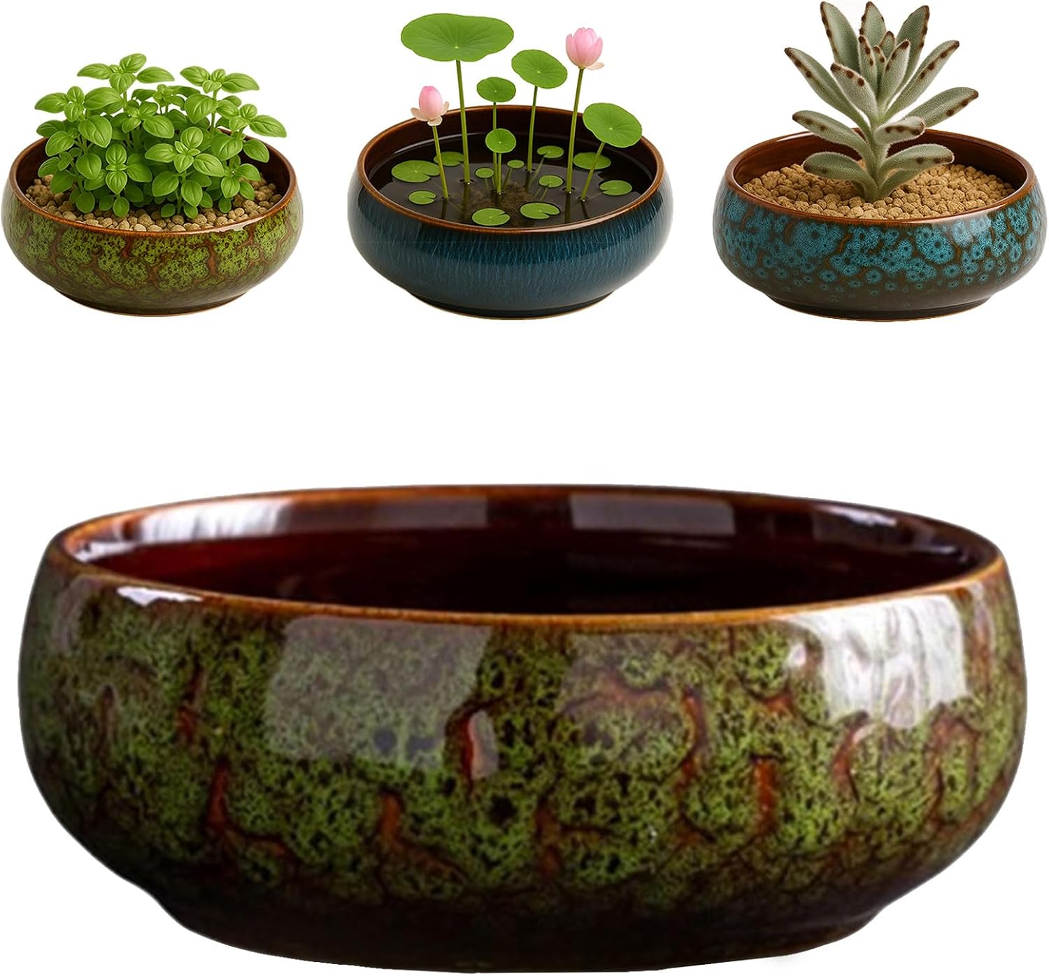 - PERFECT FOR INDOOR AND OUTDOOR GARDEN DECOR: A stylish addition to your patio, living room, or office. This glazed water garden bowl suits minimalist, oriental, or vintage plant decor themes and works great as a ceramic succulent container