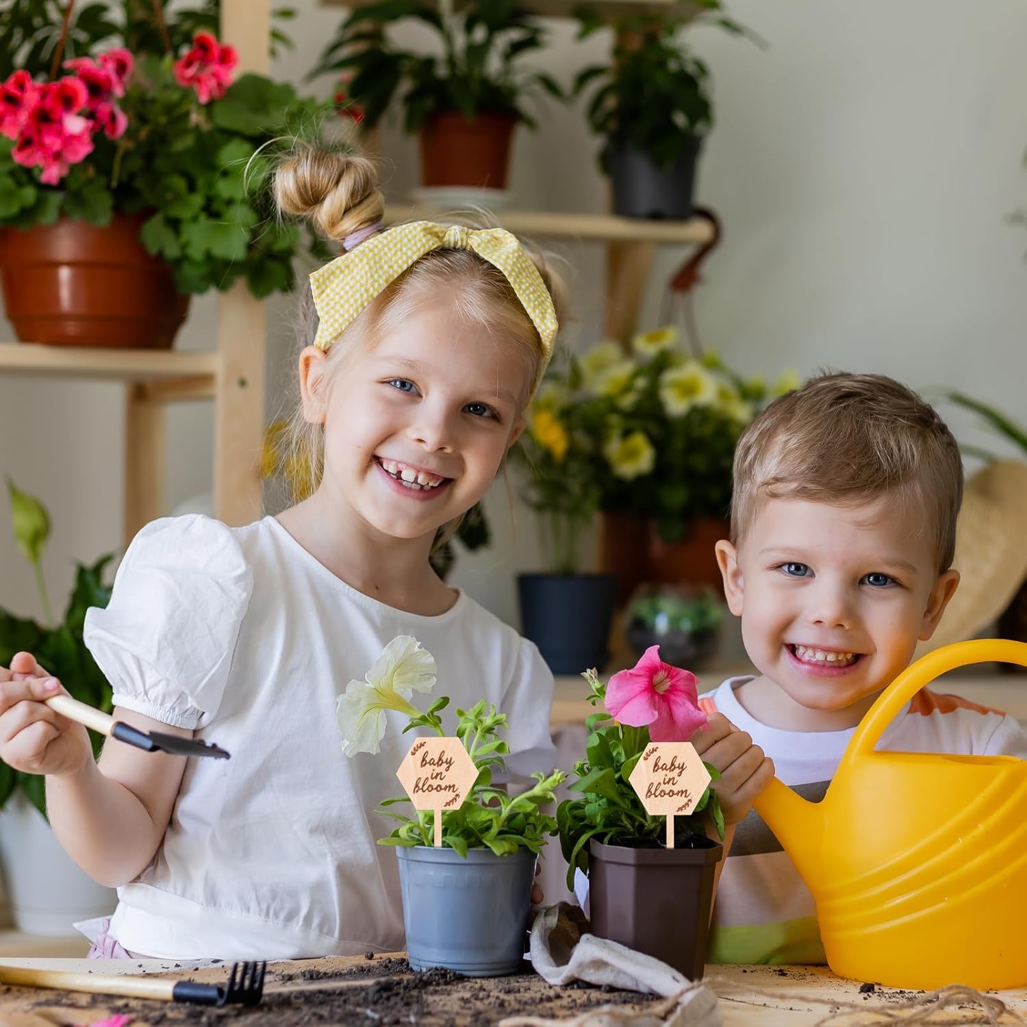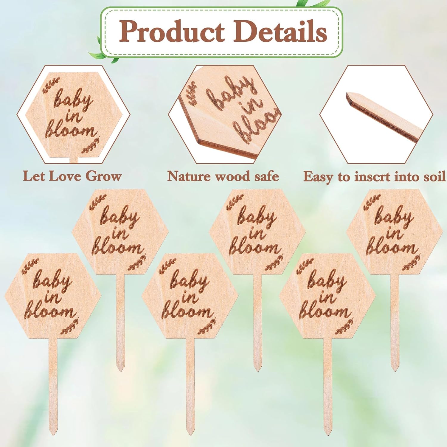 - 【Durable Material】Crafted from sturdy wood, these baby in bloom signs resist breakage and weathering, ensuring long-term use in gardens or indoor pots. The laser-engraved text and branch patterns remain clear even under sunlight, eliminating fading concerns. With a smooth, splinter-free surface and pointed base, they effortlessly insert into soil without damaging roots or hands.