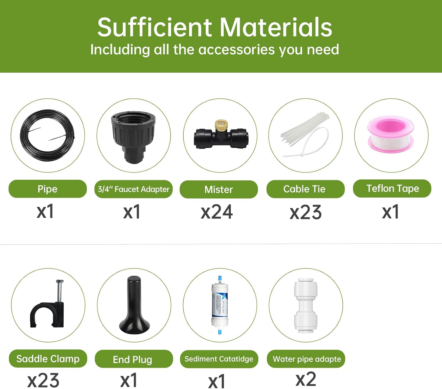 - Eco-Smart & Safe - Low water consumption (70% savings vs. manual watering) and skin-friendly mist distance guidelines. Enjoy guilt-free cooling while protecting your family and plants