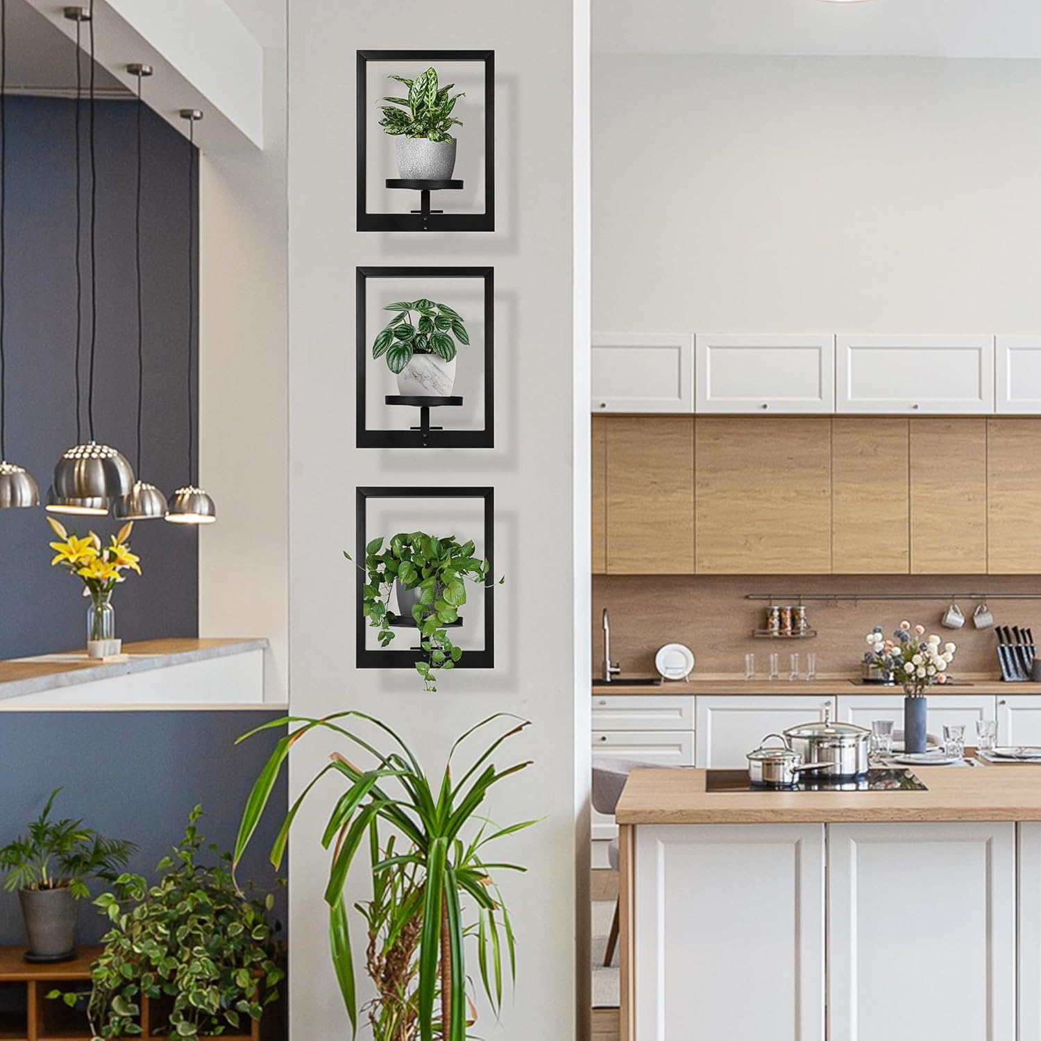 Heavy-Duty Wall Planters for Indoor Plants, Modern Metal Hanging Plant Holders, Picture Frame Wall Plant Shelves for Living Room, Balcony, Patio, Window Garden Décor, 3-Pack