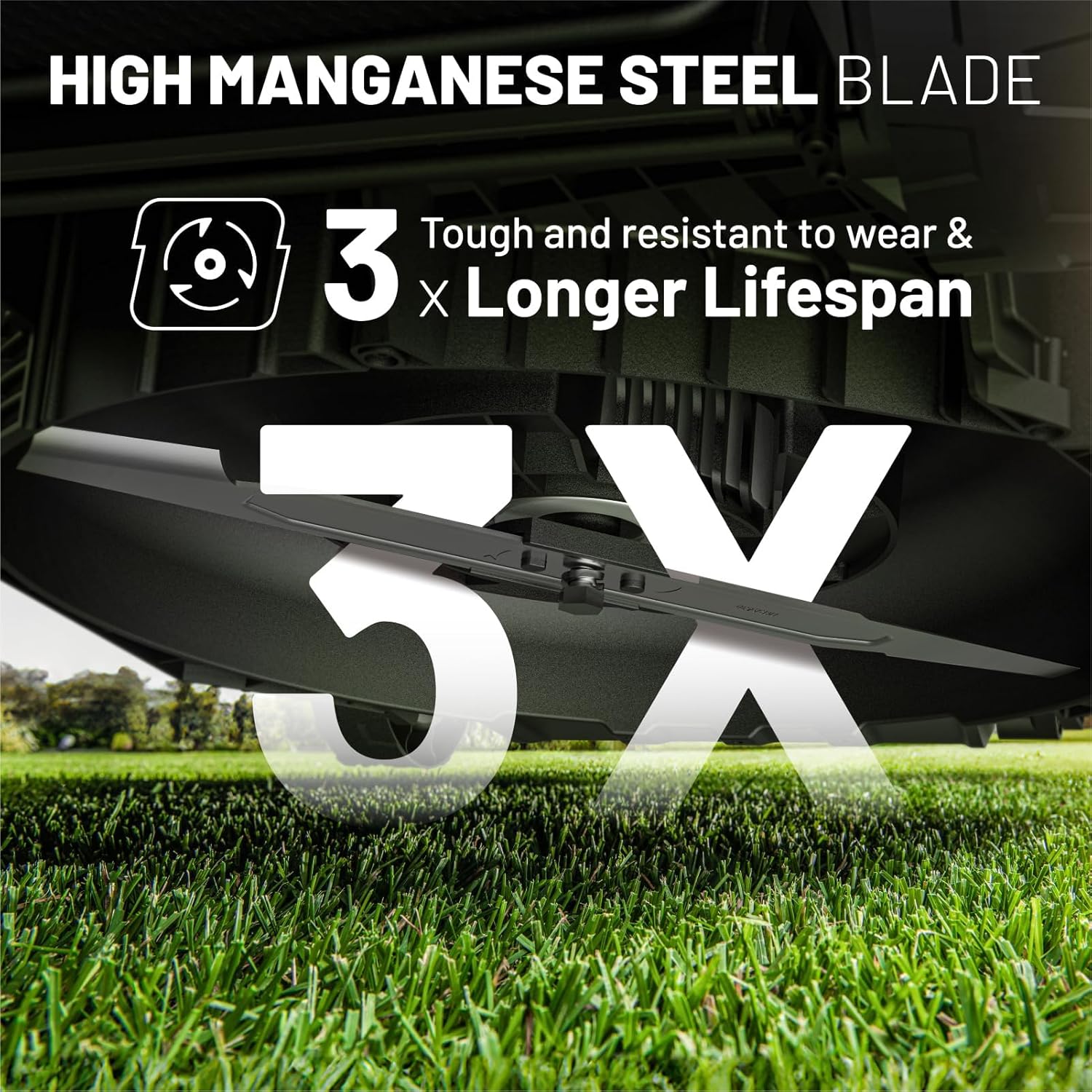 - 2 x 4.0Ah Battery: This walk behind lawn mower works up to 30+ minutes with a fully charged extended runtime, ensuring you get the job done without frequent interruptions. PLEASE NOTE: the Charger is not included.