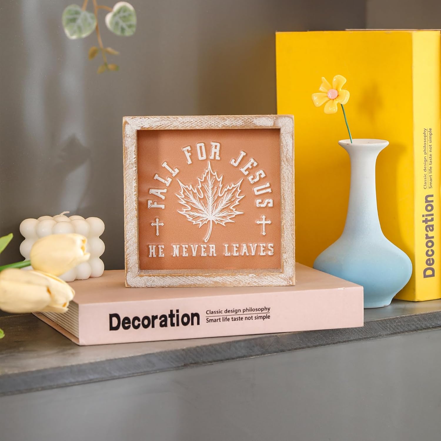 - Inspiring Faith Design: Embossed with uplifting words Fall for Jesus, He Never Leaves, complemented by elegant maple leaf and cross motifs, adding spiritual warmth to your decor.