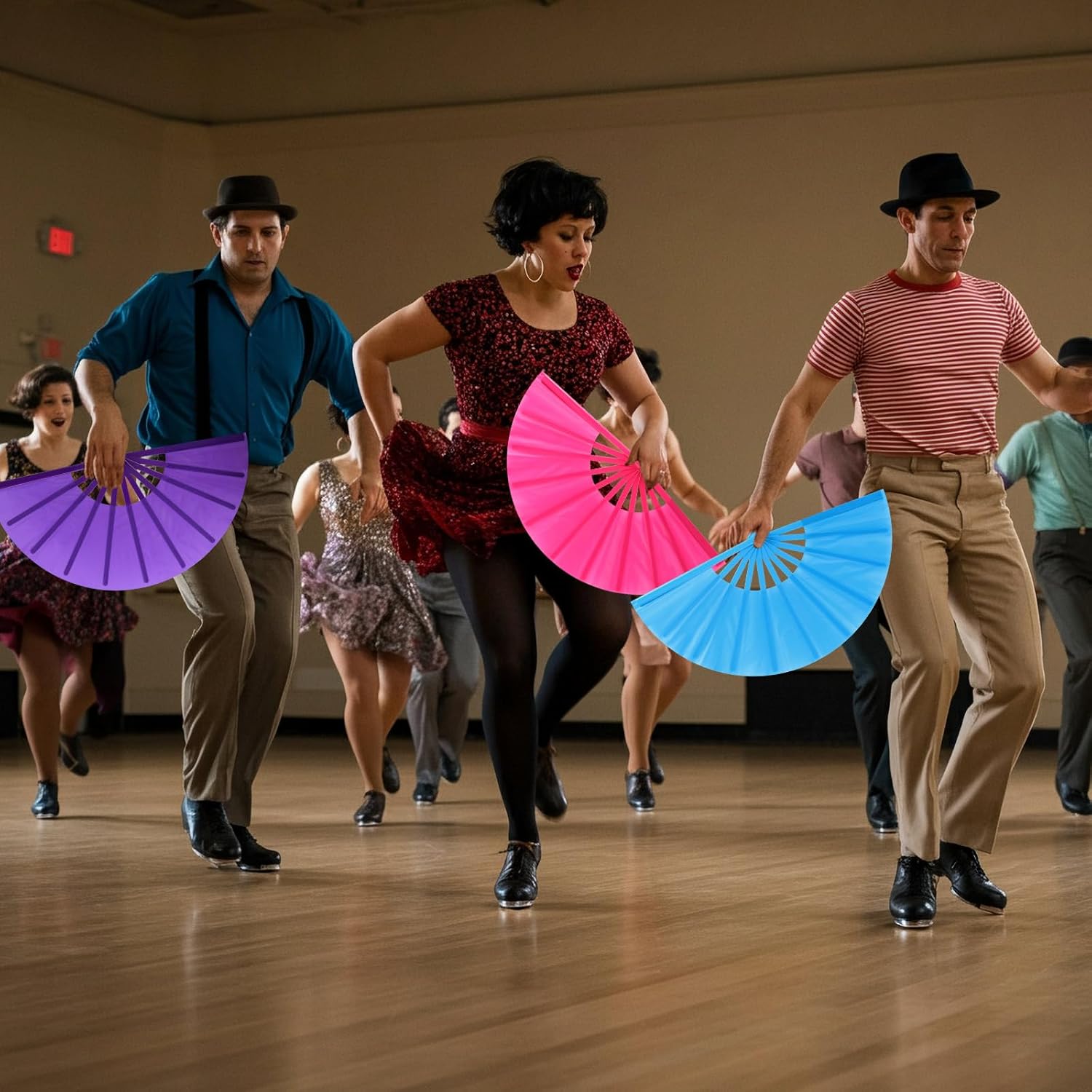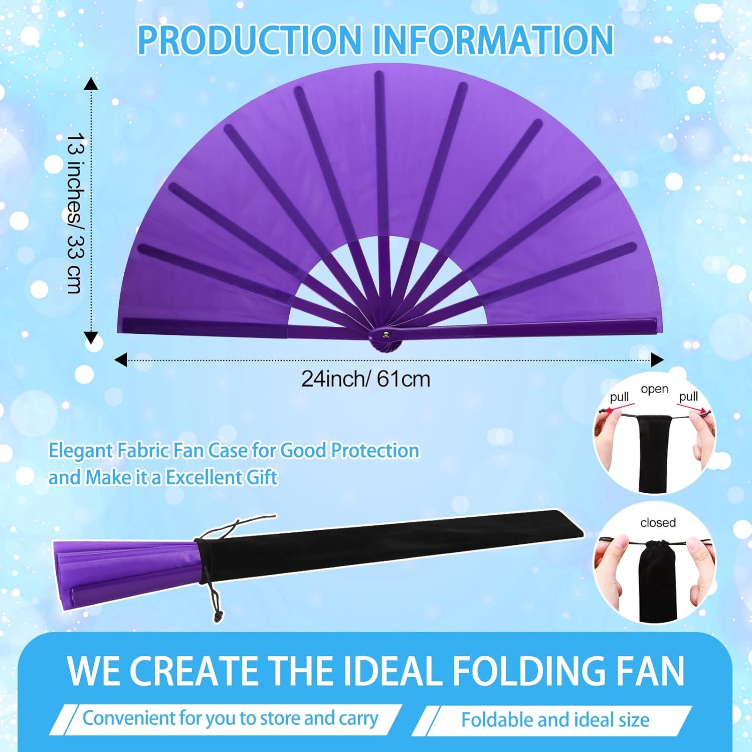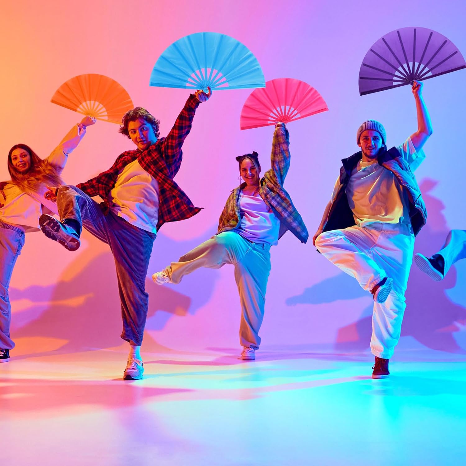 Blulu 4 Pcs 13 Inch Large Folding Hand Fans for Line Dancing Big Clapping Popping Raves Fans Bulk for Dancing Boots on The Ground Festival Party Decoration(Classic Style, Purple, Blue, Orange, Pink)
