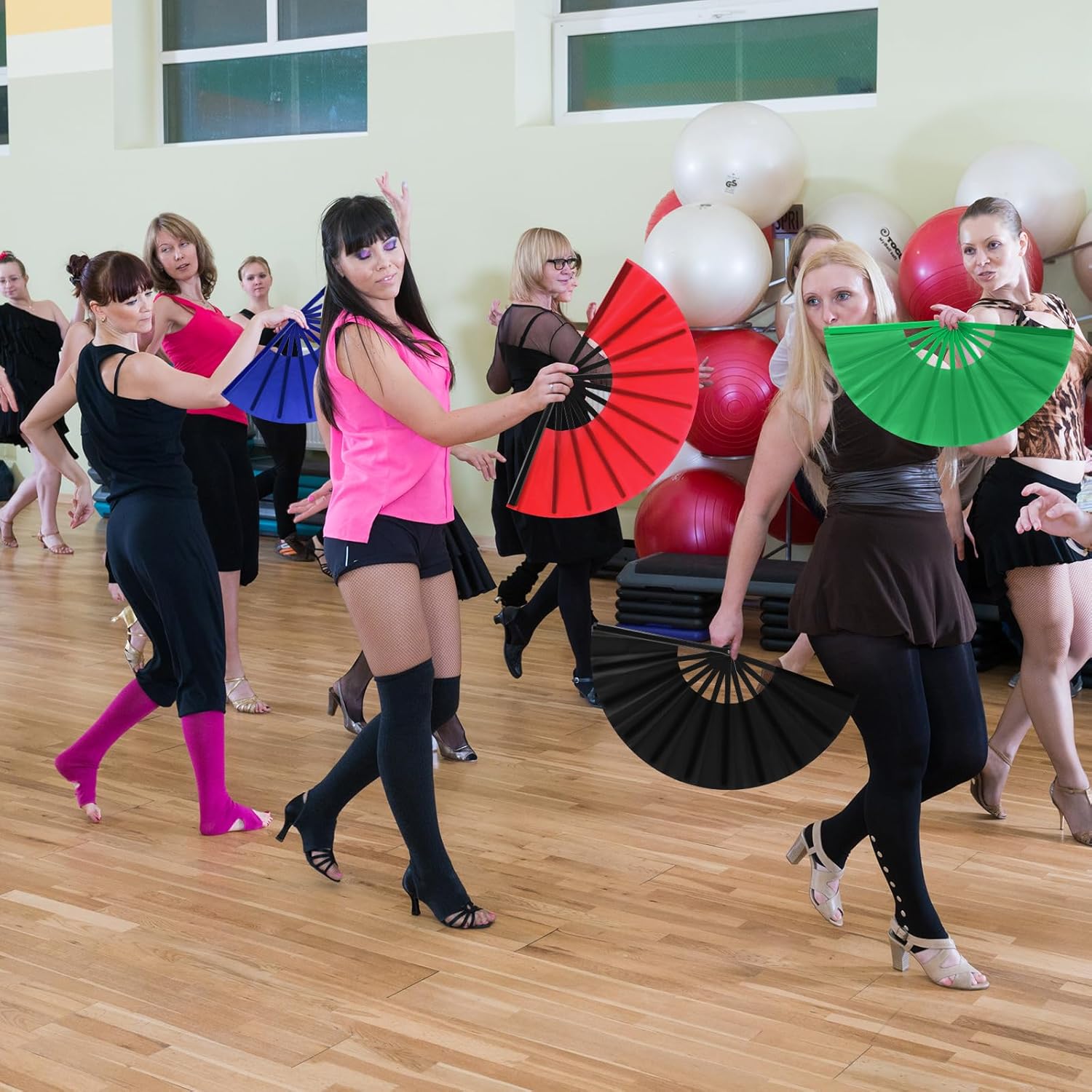 Blulu 4 Pcs 13 Inch Large Folding Hand Fans for Line Dancing Big Clapping Popping Raves Fans Bulk for Dancing Boots on The Ground Festival Party Decoration(Classic Style, Red, Black, Blue, Green)