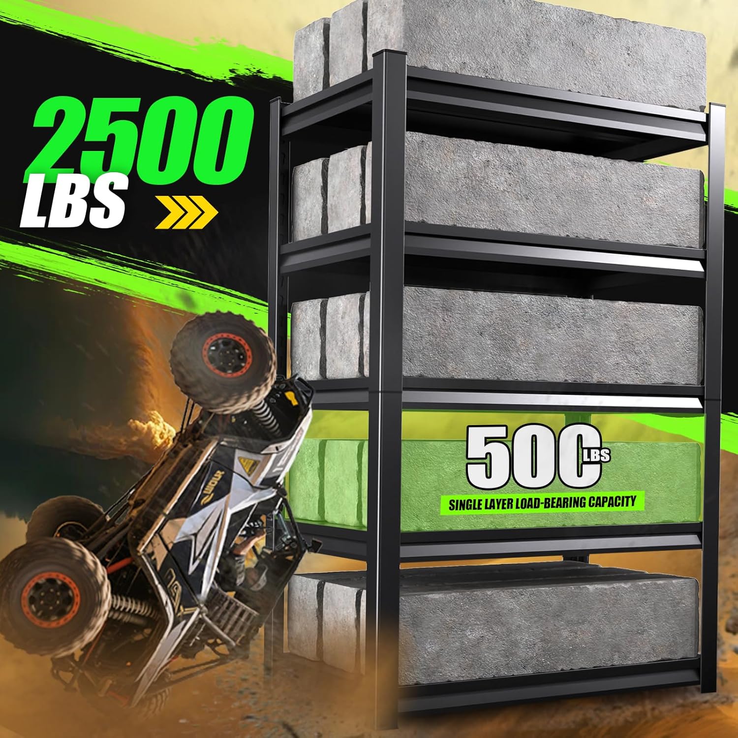 72”H Garage Shelving 2500LBS Adjustable Storage Shelves,5 Tier Metal Steel Heavy Duty Shelving Unit, Industrial Utility Rack Shelf, Storage Organize for garage, Basement ,Black ,72''H*35.4''W*15.7''D