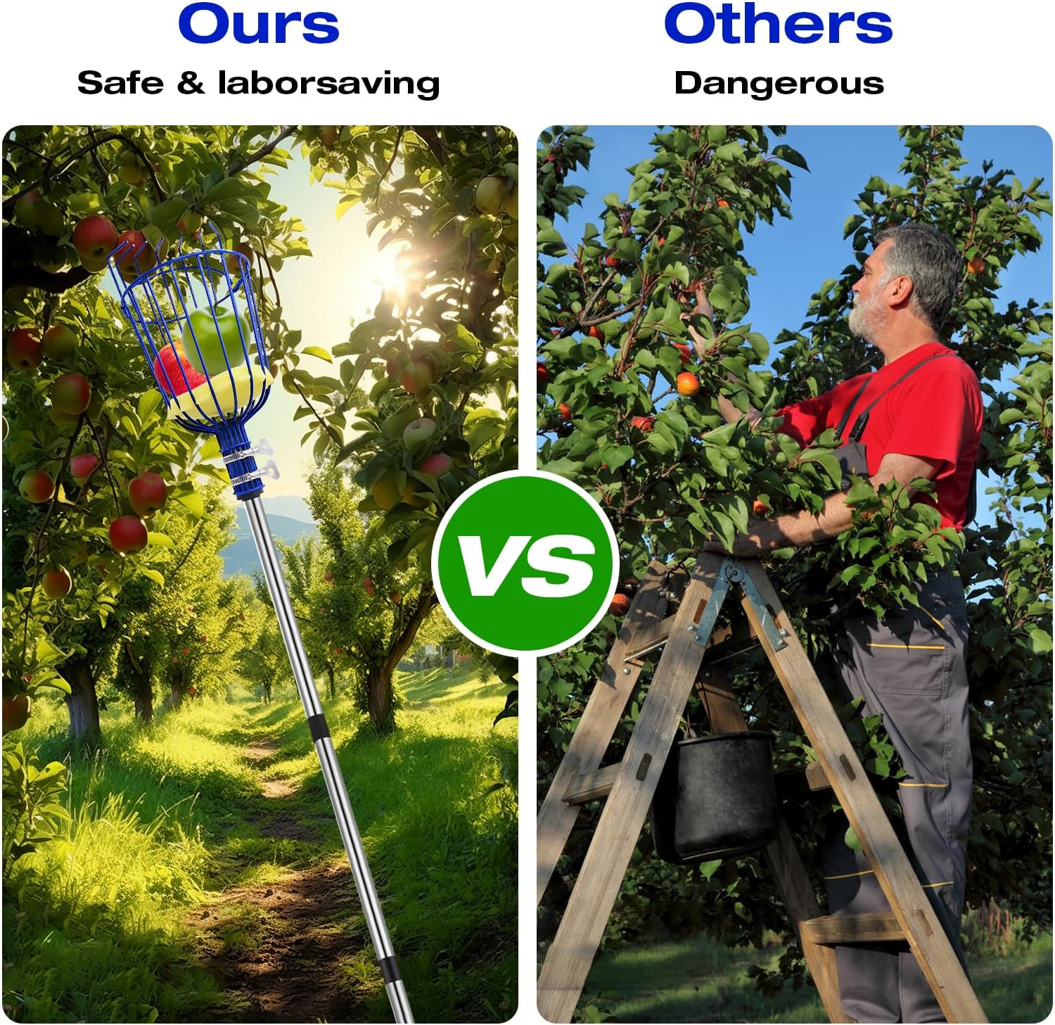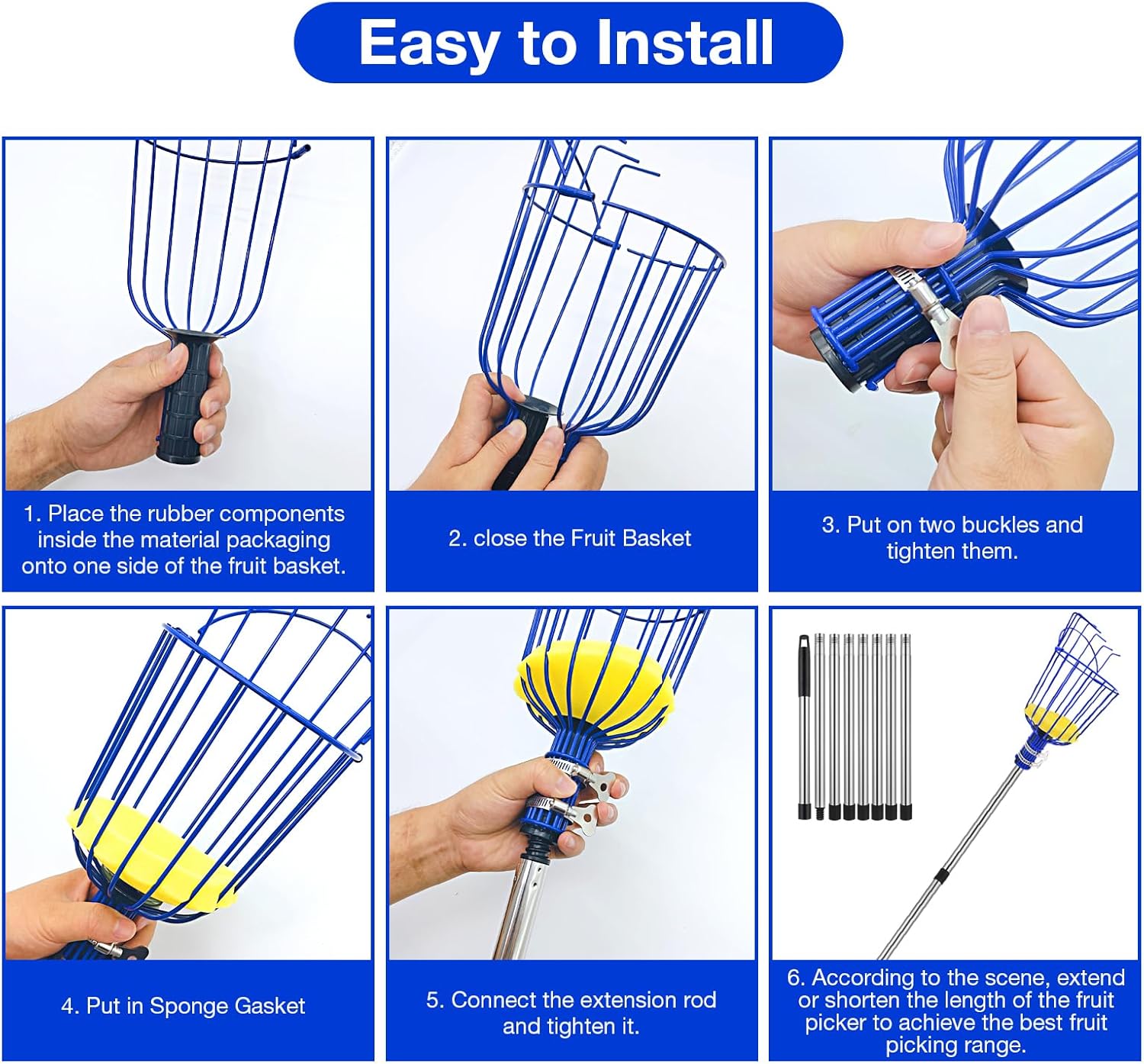 - 【Reinforced Steel Construction】 Built with durable 1 diameter stainless steel poles and powder-coated basket, this fruit tree picker resists bending and corrosion. Double Fixed Metal Clip to securely connect poles and heavy-duty fruit catcher basket while supporting full loads of citrus or apples.