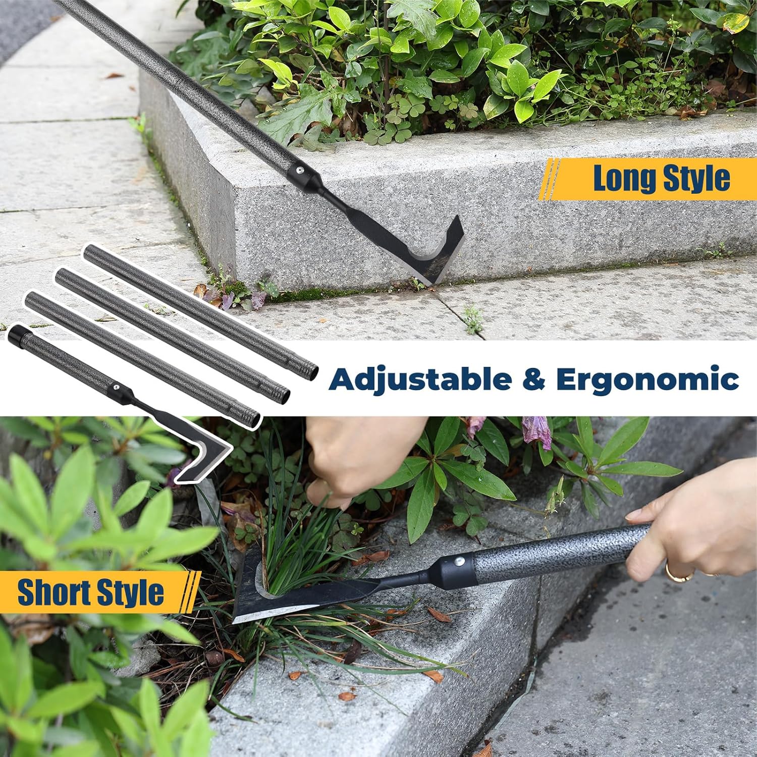 Weed Remover Tool | Adjustable Metal Handle (14.5"-58.4") (Upgraded Rustproof) | Multi-Functional Garden Hook for Pavement Gaps, Moss, Bushes | Commercial-Grade Yard Maintenance Equipment