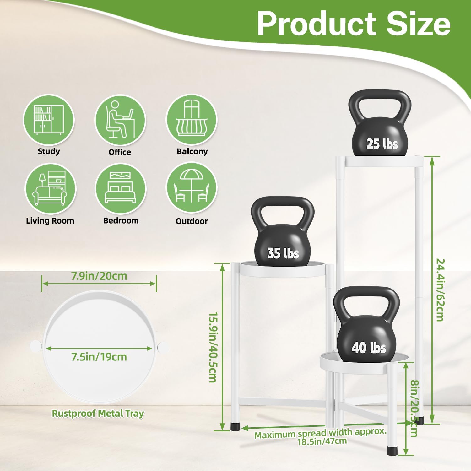 - 7.9-Inch Wide Trays with Rim: This tall plant stand features 7.9-inch round trays, suitable for pots up to 7.5 inches wide. Each tray is designed with raised edges that guard against spills and tipping, keeping your plants safe and steady