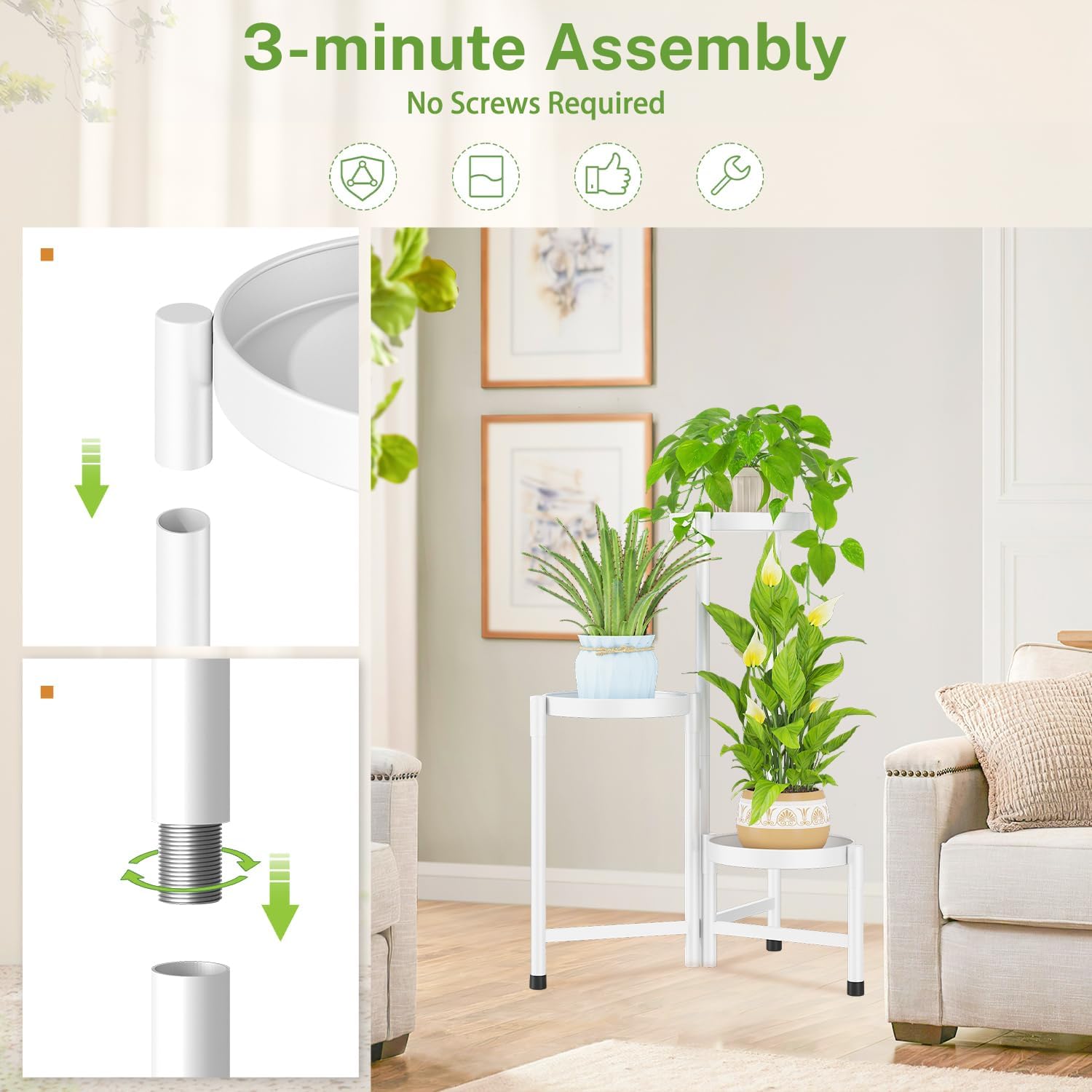 - Easy 5-Minute Assembly: No tools, no screws, no stress—just follow the clear manual to set up your plant stand indoor in minutes. The quick and simple process saves effort, letting you enjoy a sturdy and orderly display right away