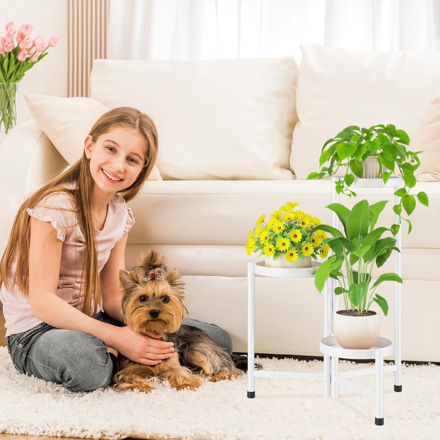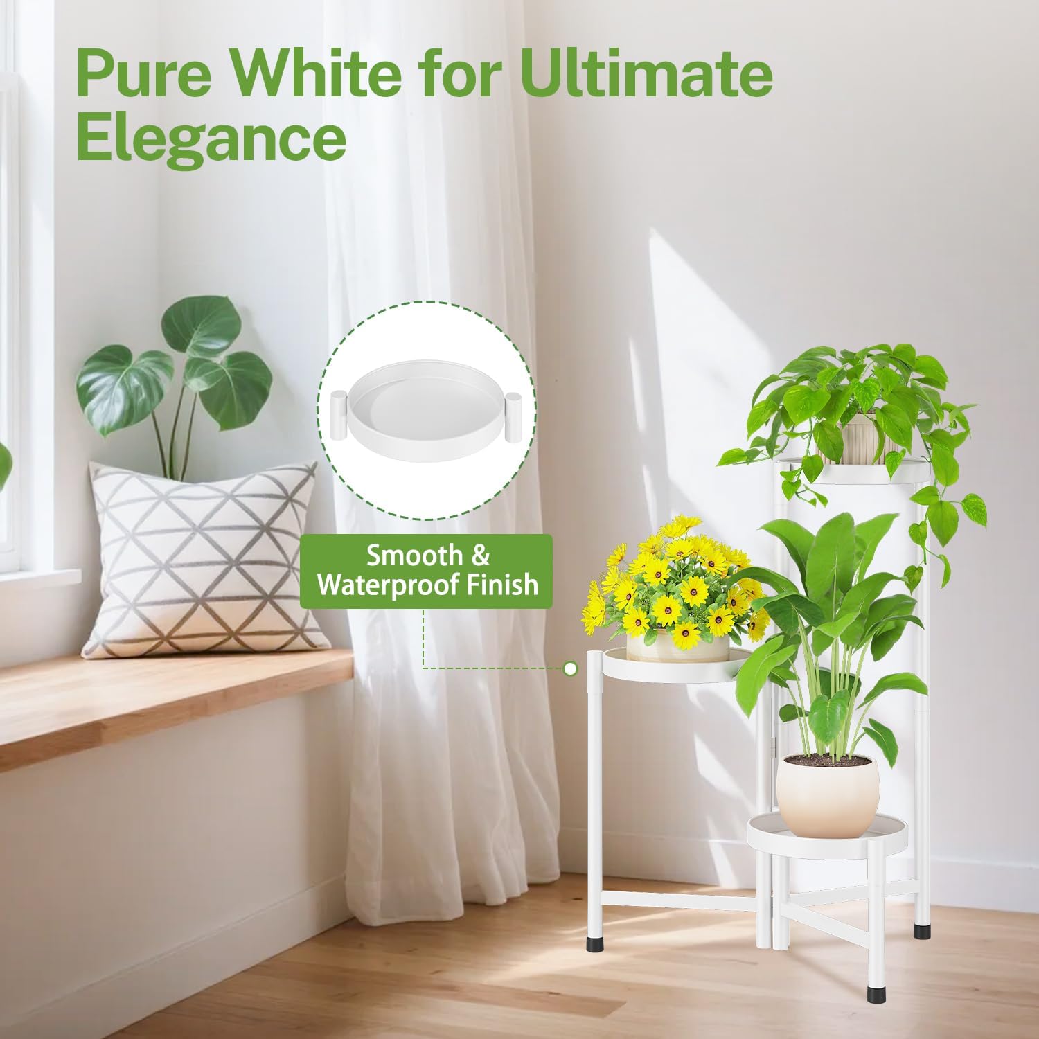 iDavosic.ly Plant Stand Indoor Outdoor, 3 Tier Corner Metal Flower Display Holder Shelf, Folding Tall Orchid Rack for Patio Balcony Porch Garden Living Room House, White