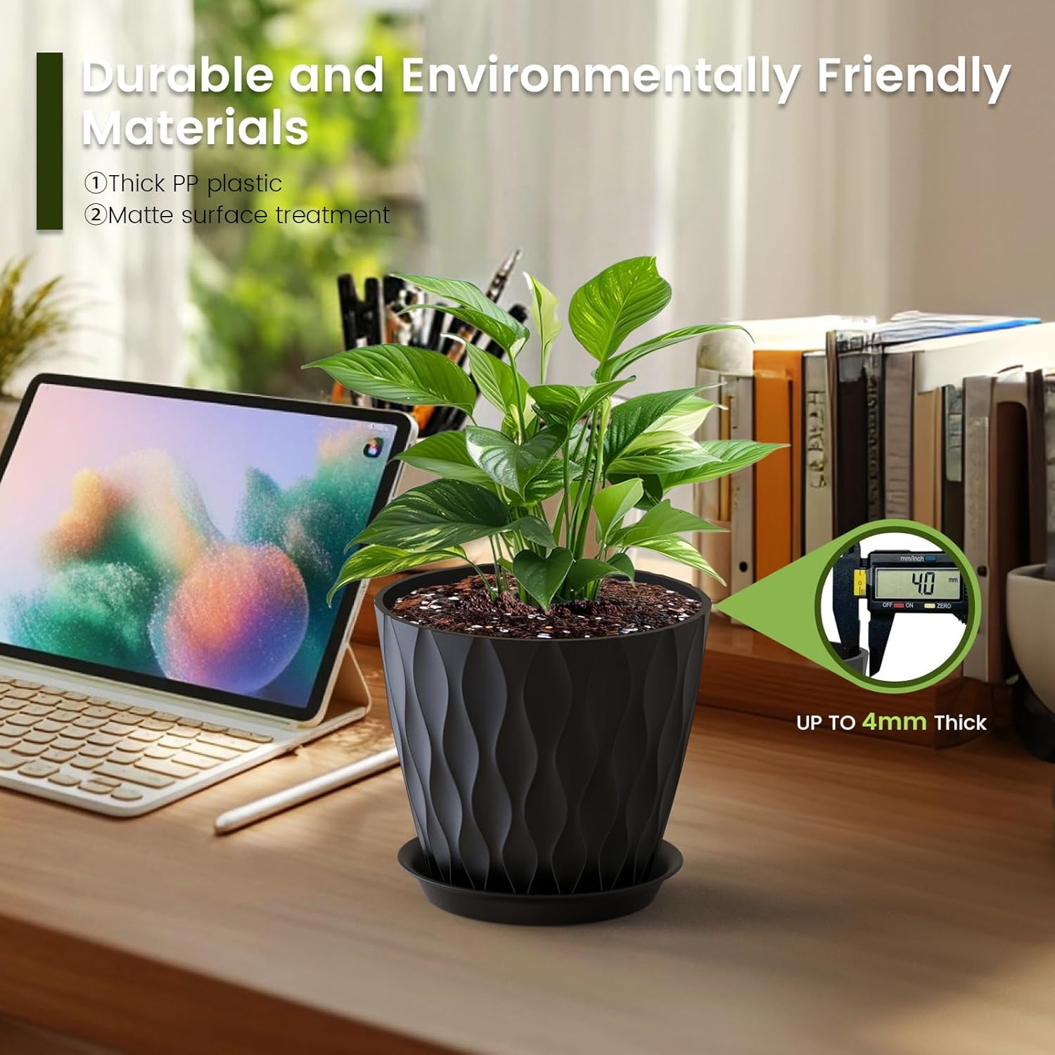 - 【Lightweight and Durable】Crafted from thickened, eco-friendly polypropylene, our indoor plant pots are lightweight yet extremely durable. Weatherproof and UV-resistant, even if used frequently, it will not easily break or fade, ensuring lasting beauty and functionality