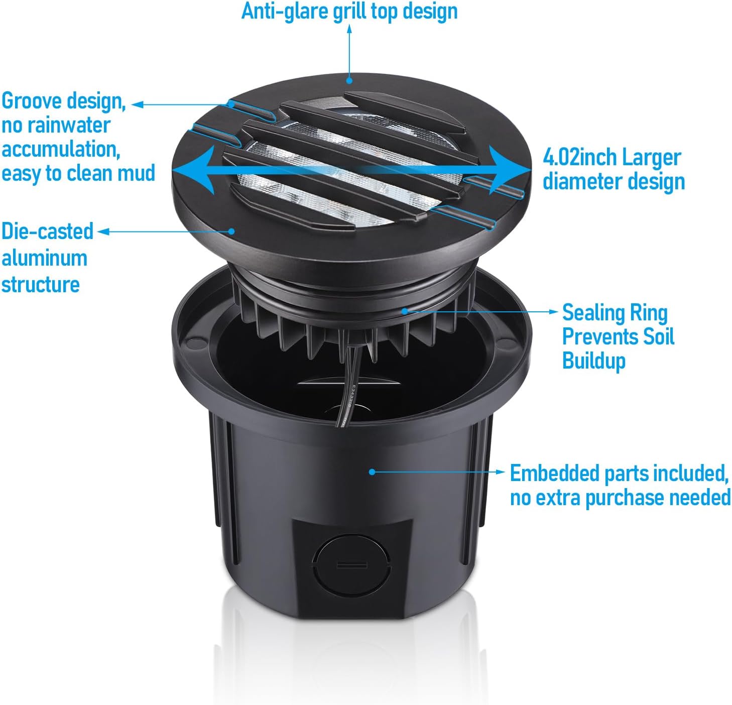 - Safe for Outdoor Use: Die-casted aluminum housing makes this led in-ground light has perfect corrosion resistance and heat dissipation. IP67 waterproof and -4℉-104℉ working temperaturemakes it can work under harsh weather
